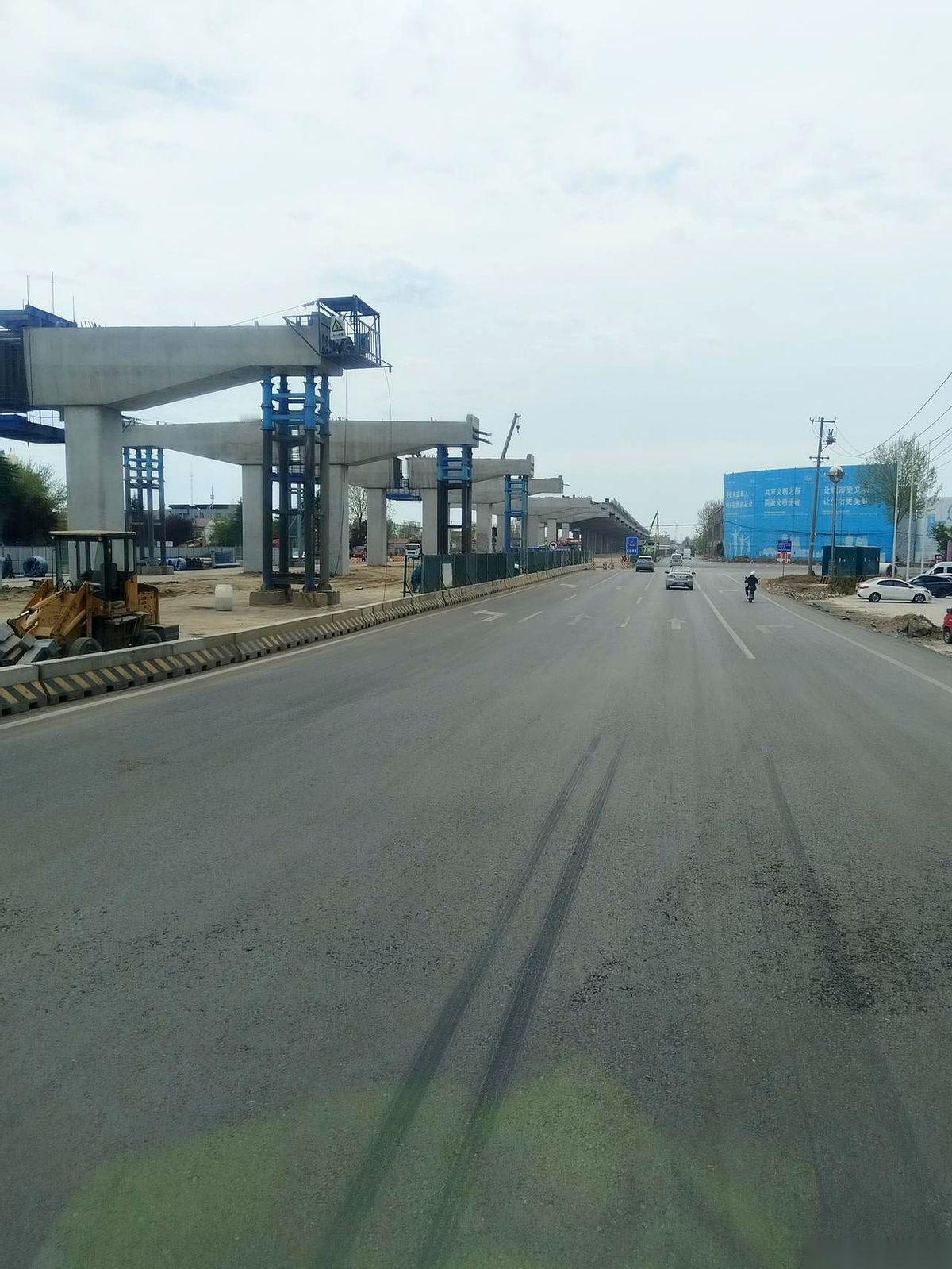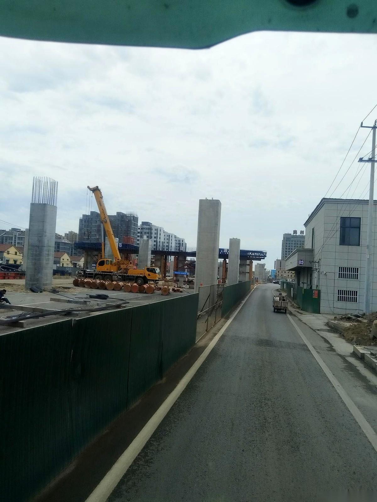 视线越过前面那辆车的车顶,就能看到那座巨大的桥墩,像个沉默的巨人,稳稳地扎在马路中间。再往远处看,一个接一个,一路排到天边去。巨人的手臂,那些钢筋水泥的桥面,正在一节一节地朝彼此伸过去。