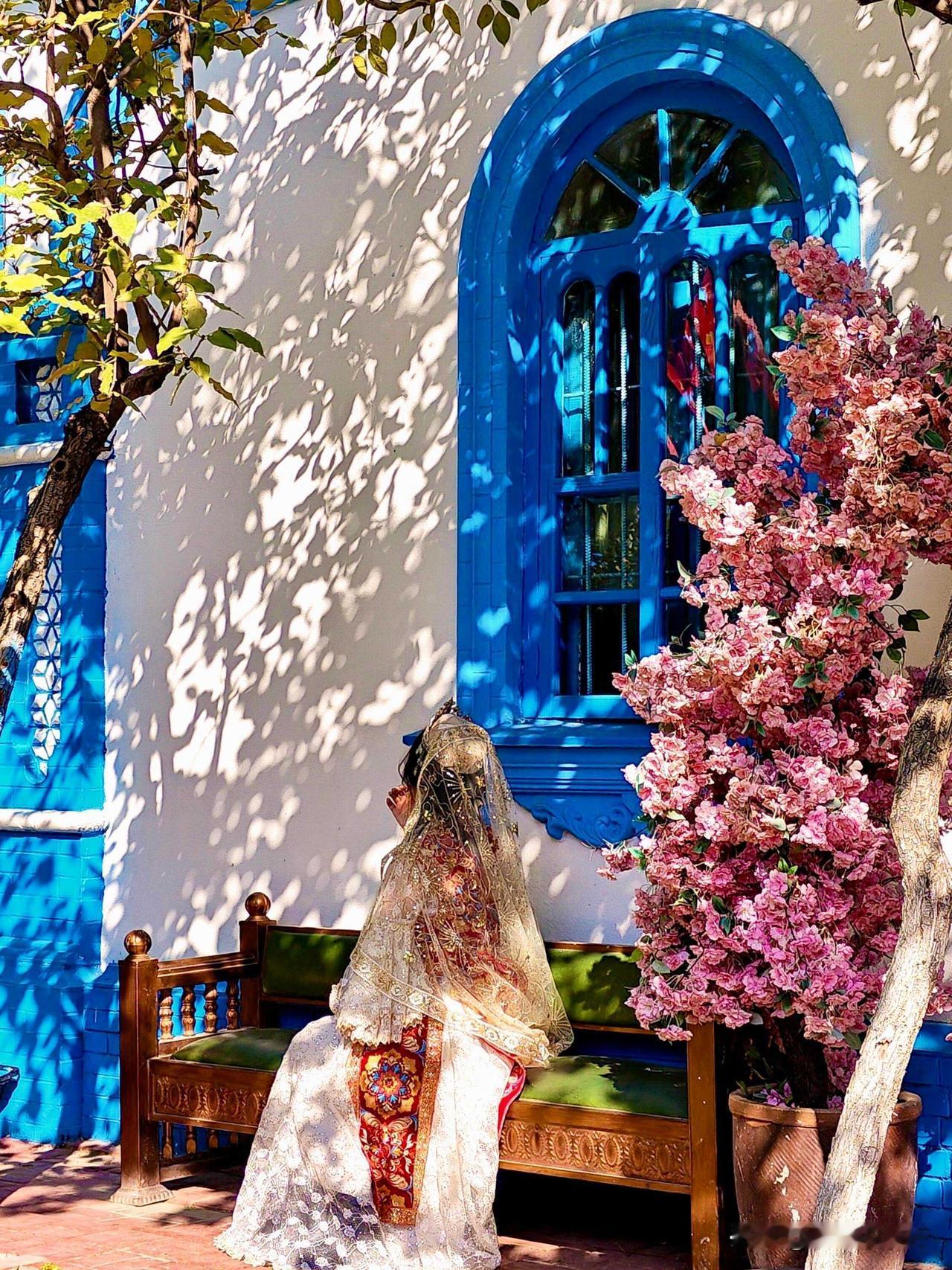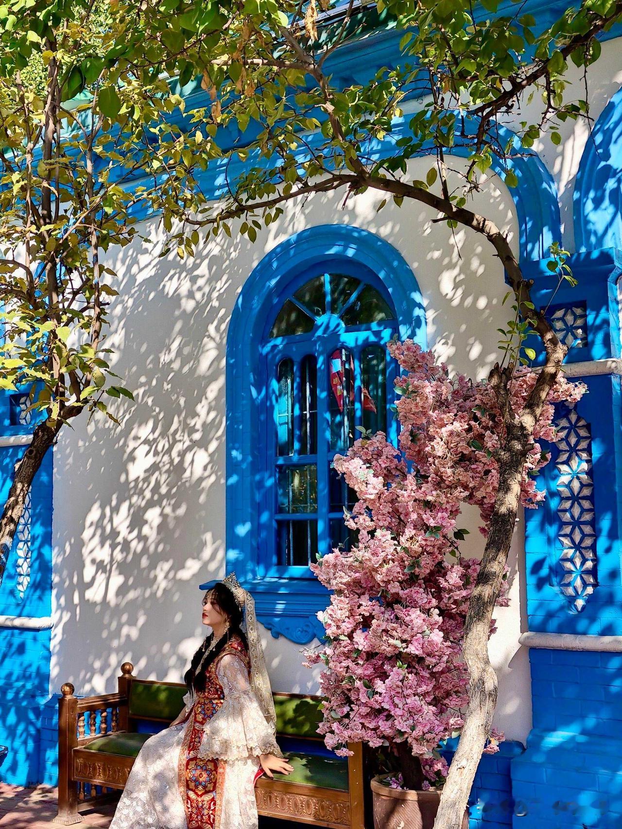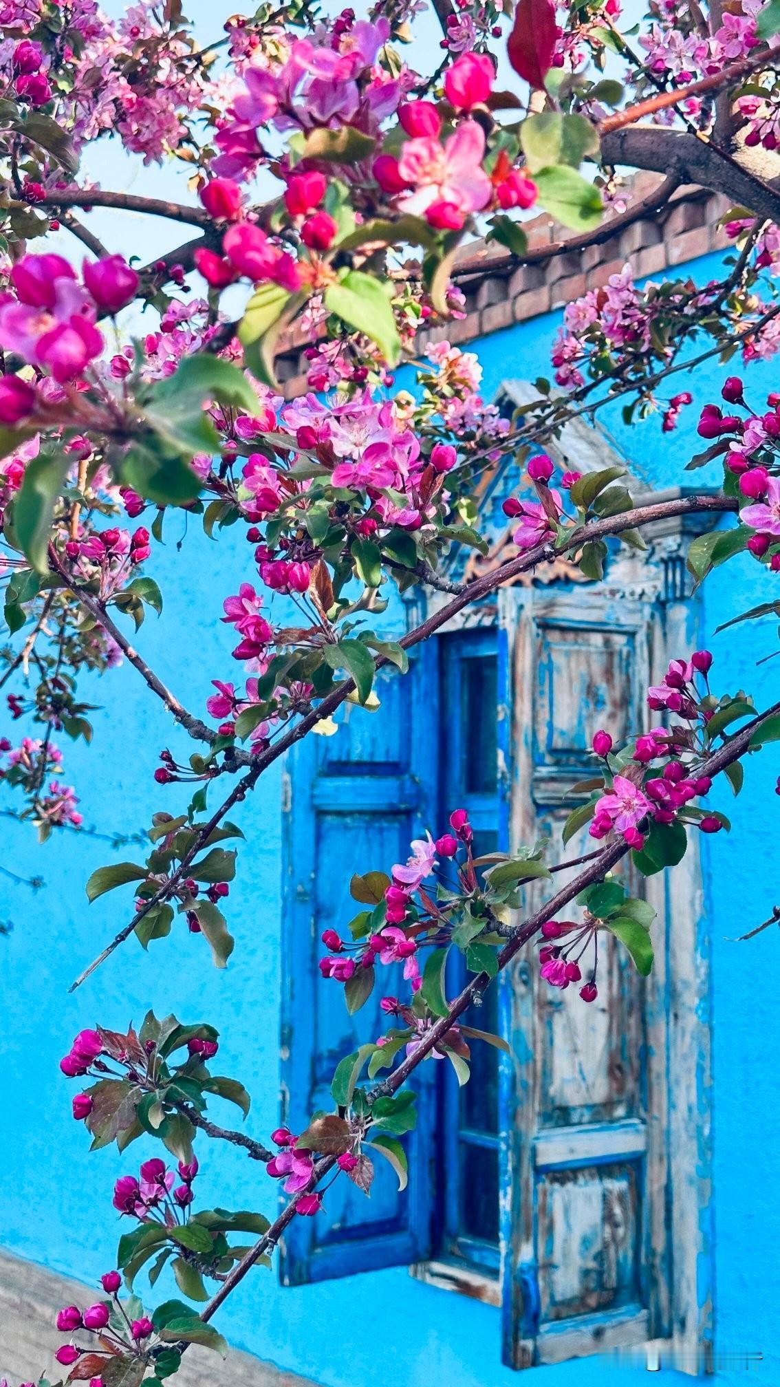 这片以六角星布局的老街区,被春日彻底唤醒。蓝墙黛瓦间,繁花似锦,绿树成荫,春日的生机与异域风情完美交融。巷子里的老树枝桠抽出新芽,各色花卉簇拥着别致的院落,每一处角落都藏着不期而遇的美好。