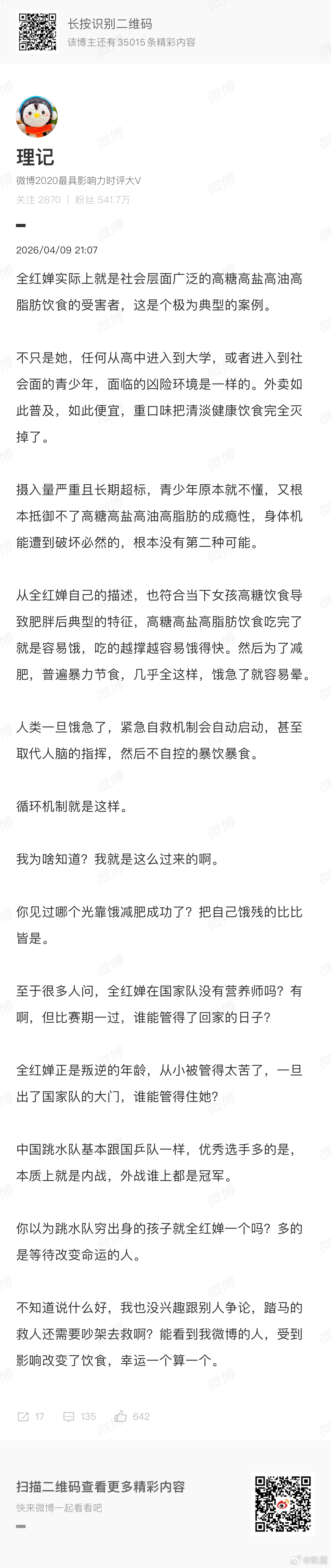 少年伯爵、理记,讲到喝水也会变胖,讲到控糖,都很对!全红婵小妹妹,面临的发育、生活管理、学习成长三重挑战。