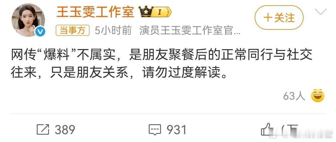 曝黄景瑜王玉雯恋情有点搞笑!内娱辟谣速度天花板了属于是,狗仔10:59刚放视频,黄景瑜工作室11:28就发声明,王玉雯工作室11:34秒跟,间隔6分钟,文案都像复制粘贴的,连“不必过度解读”都一字不差!只能说曝黄景瑜王玉雯恋情