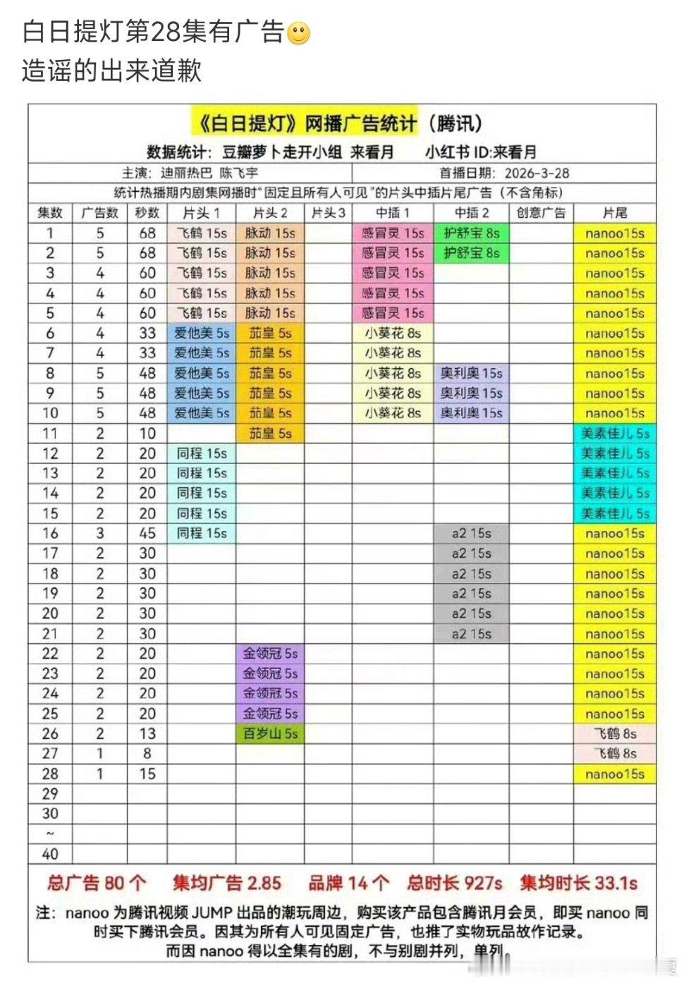 白日提灯第28集有广告顺便分享一下下家的数据。比剧扑程度、颠倒黑白程度、数据作假