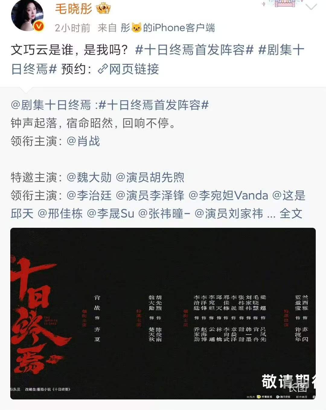 毛晓彤官宣十日终焉肖战毛晓彤合作十日终焉肖战毛晓彤合作十日终焉 两个毛晓哈哈哈