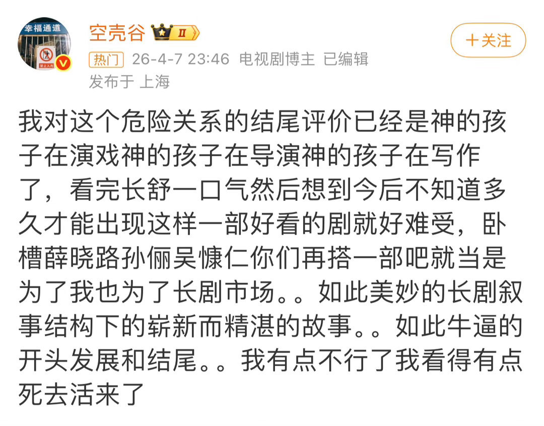 想看孙俪脱离苦海的可以进场了 前面看颜聆被精神操控那段我真的憋屈死了,恨不得钻进屏幕替她反击。幸好后面觉醒反击,眼神从怯懦变回坚定,看得我拍大腿叫好。