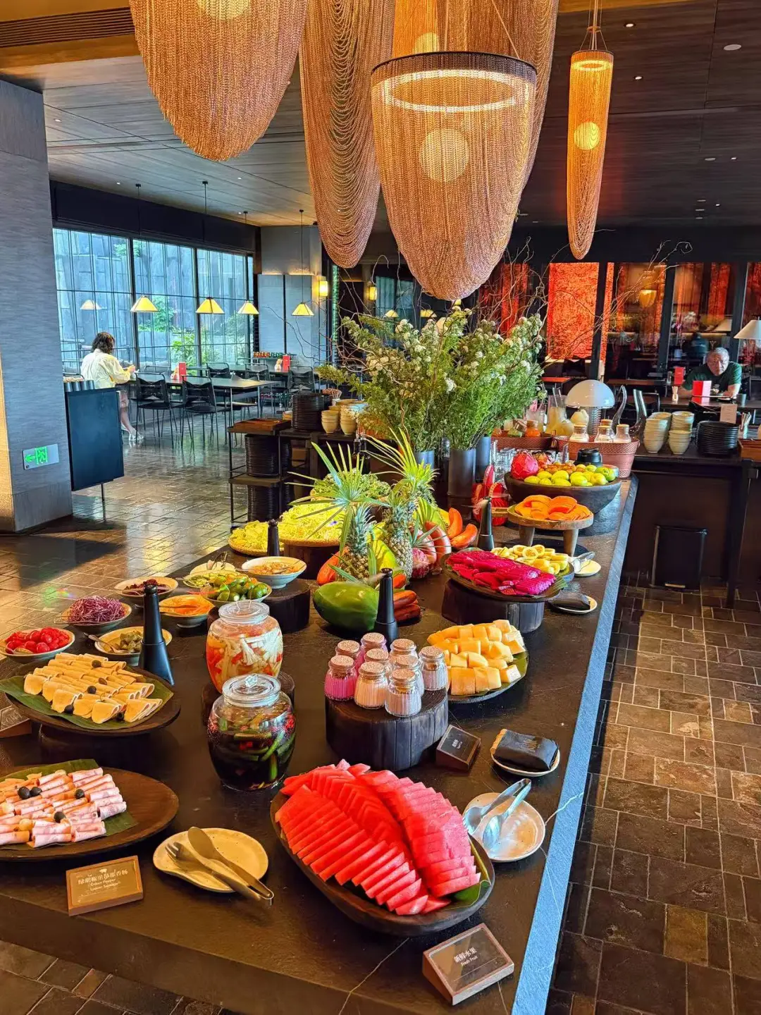 早餐在藏红花西班牙餐厅,精致有格调,中西餐都有,一定要试试海南湿腌粉和陵水酸粉,美味又有当地特色。走之前别忘了去市集带几包山楂零食,酸酸甜甜很开胃,当伴手礼真的太适合了!