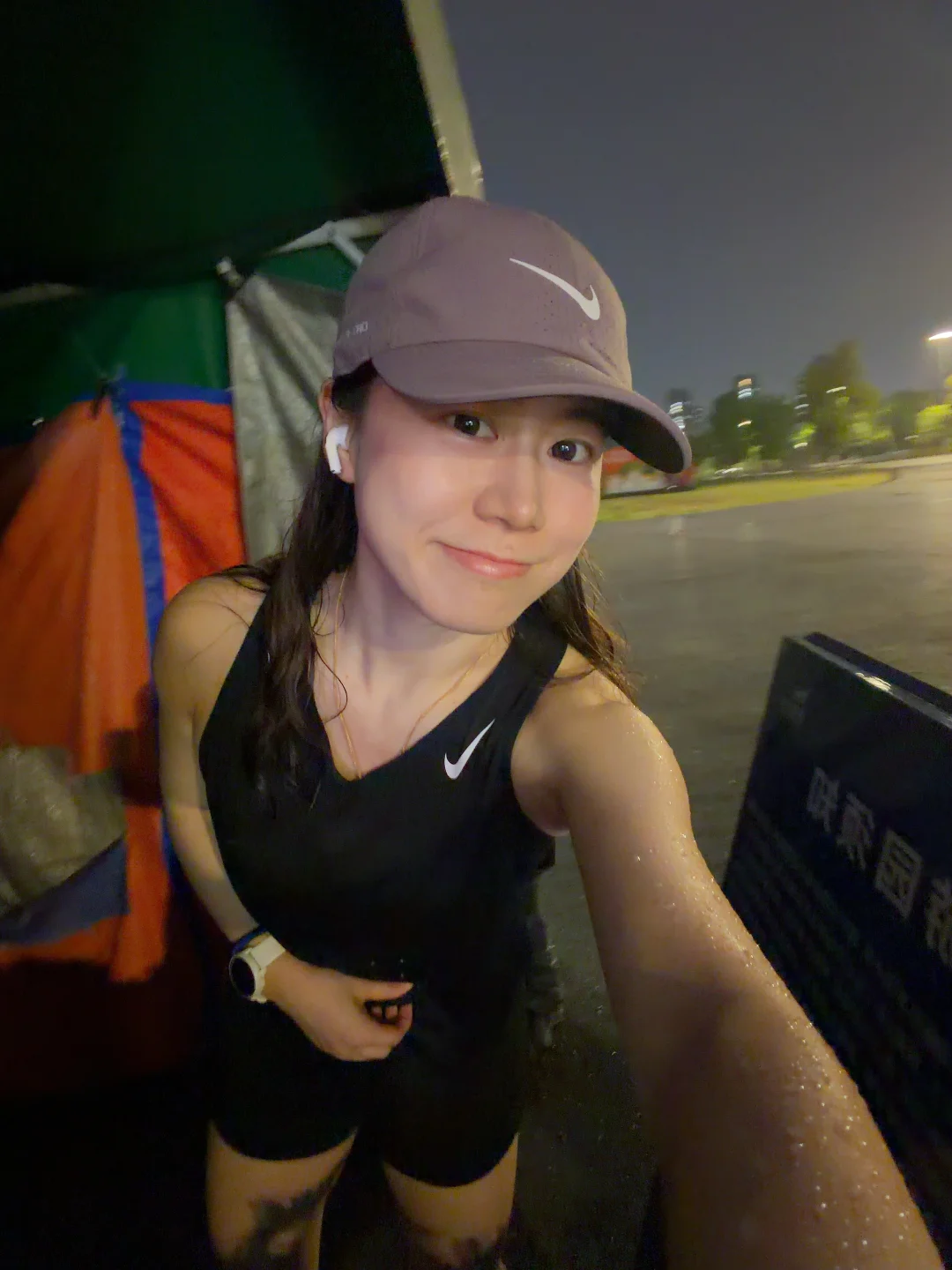 在去姐车的200m途中,鞋已经湿了