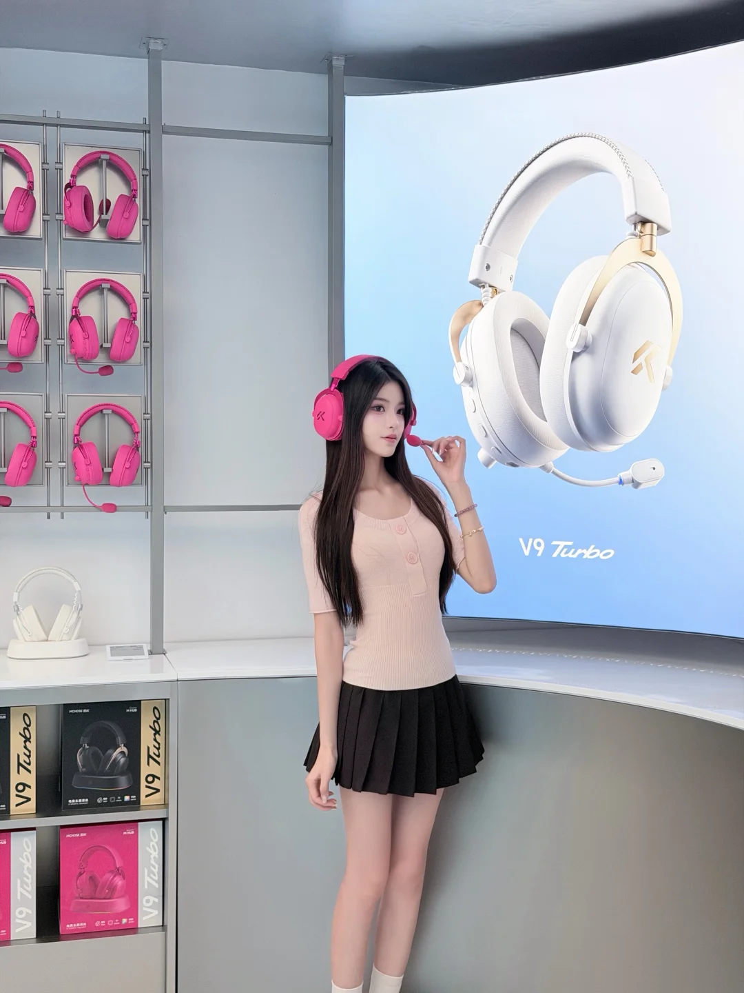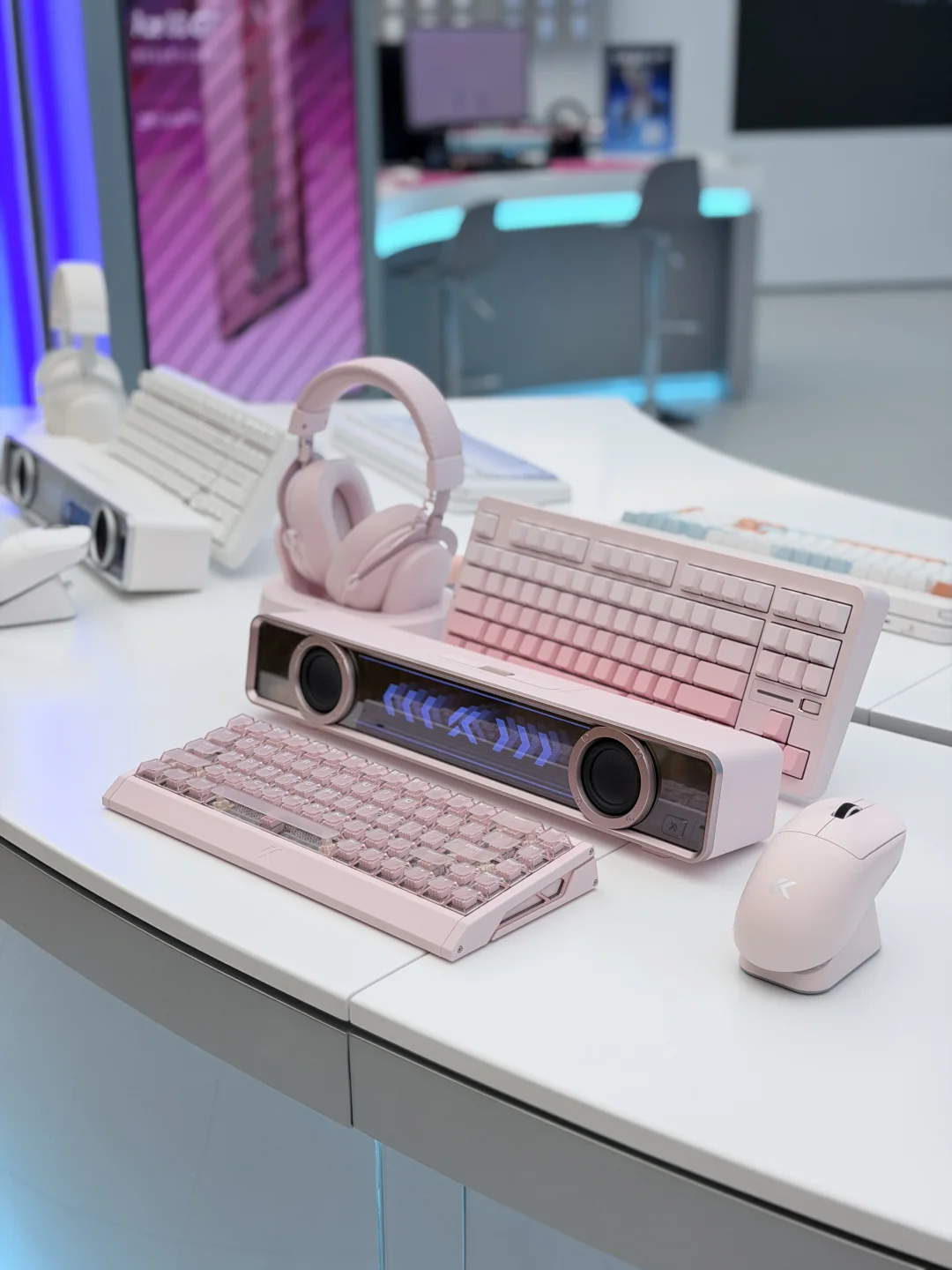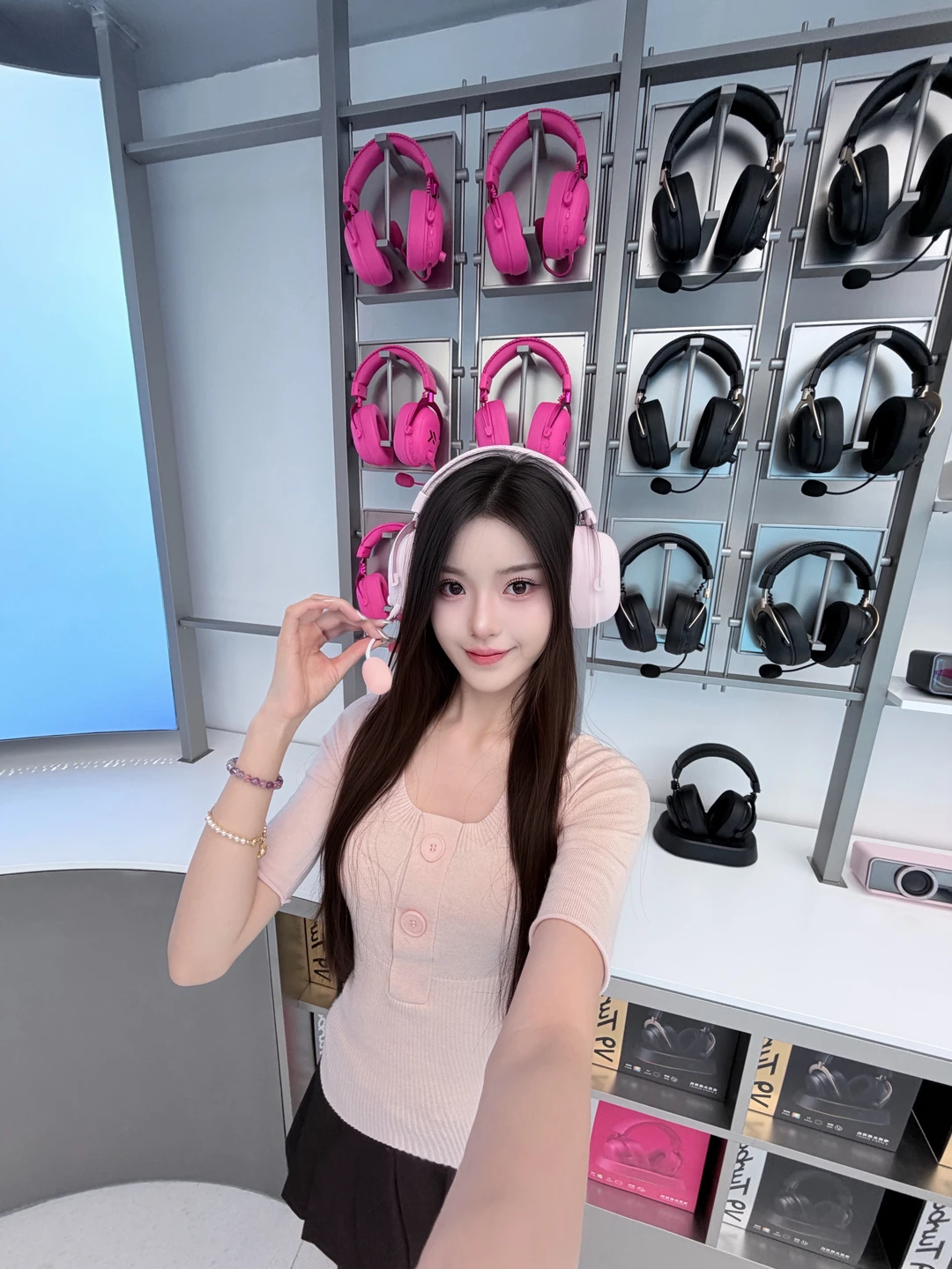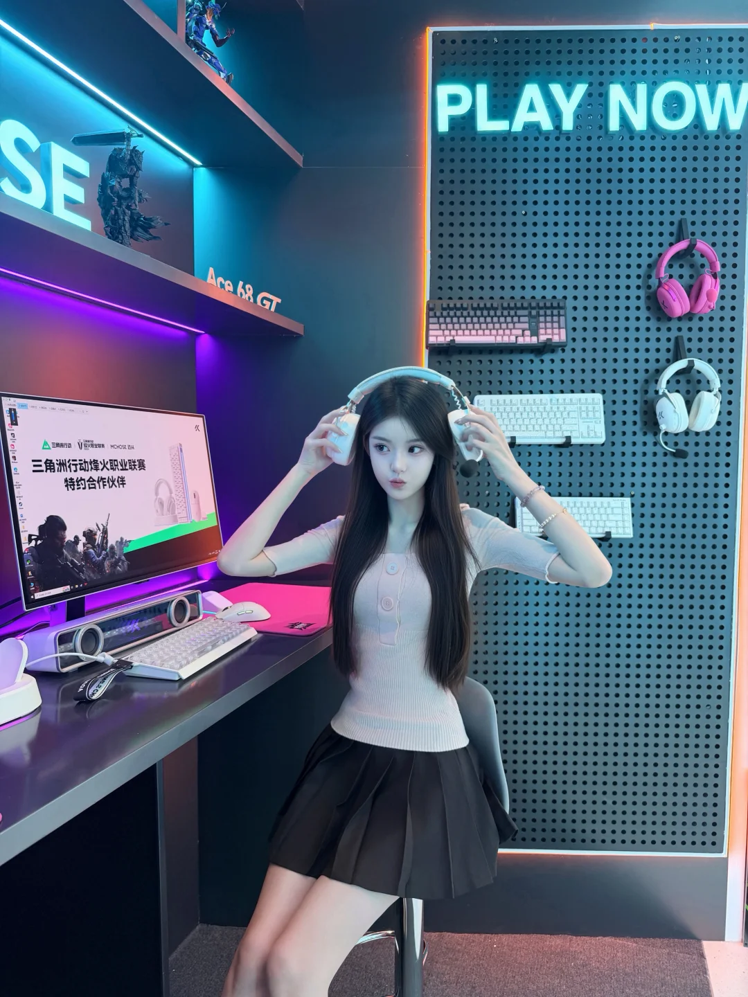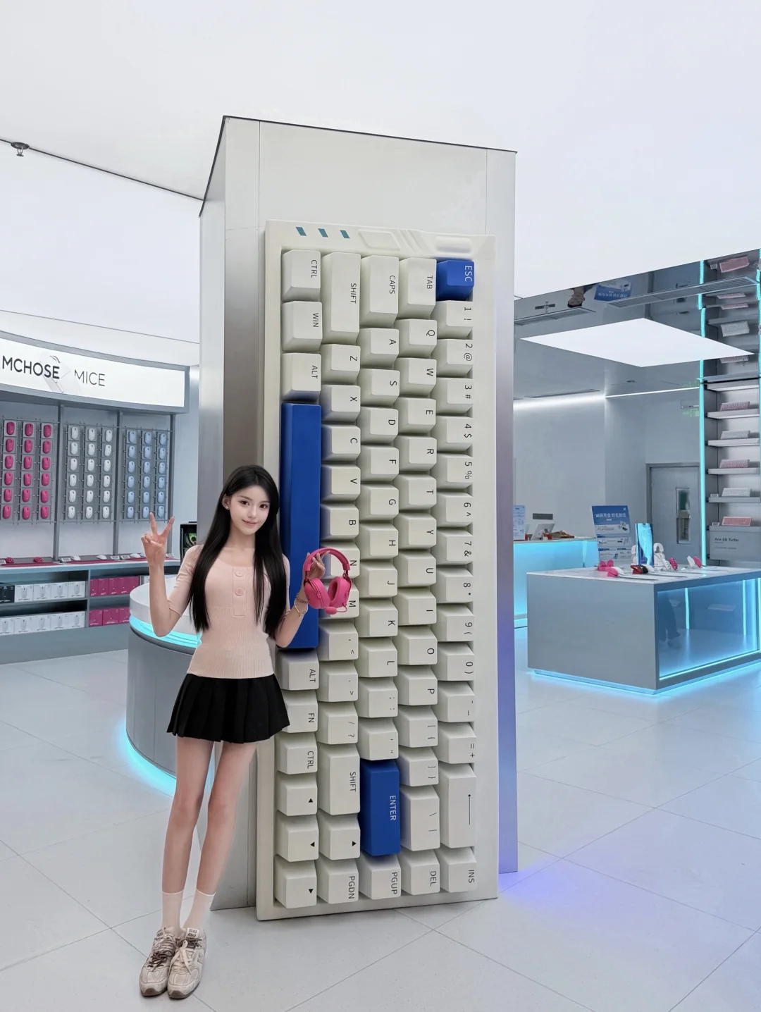 还有一整面炫酷的旗舰鼠标墙,键盘的手感真的太棒了!戴着新款头戴式耳机美美出片了🎧颜值真的太高了,每天回家用着迈从就这么美萌的打游戏蒽····