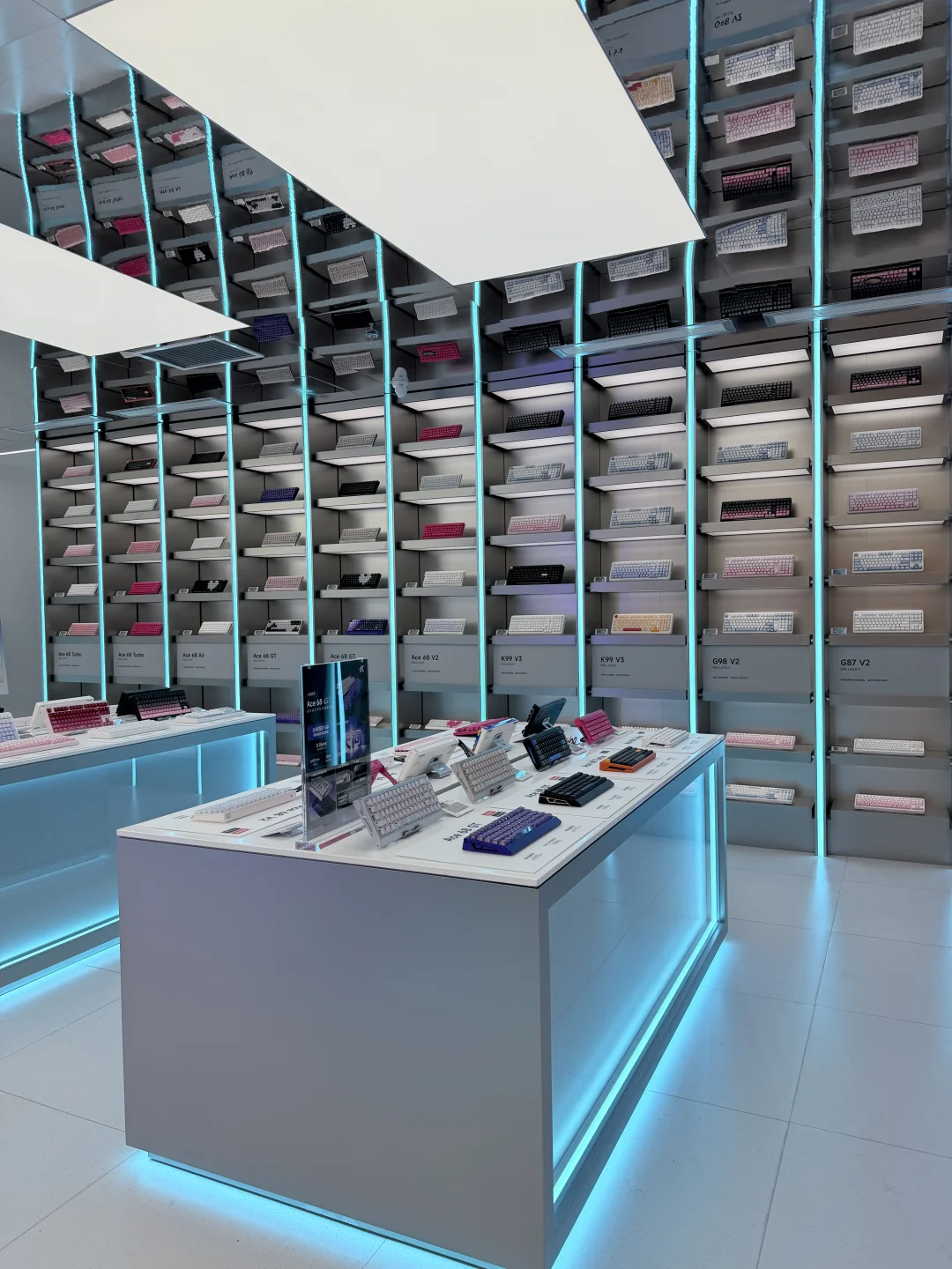 这里简直是电竞迷的狂喜之地——入口处的巨型键盘⌨️两面墙上铺满的键盘…