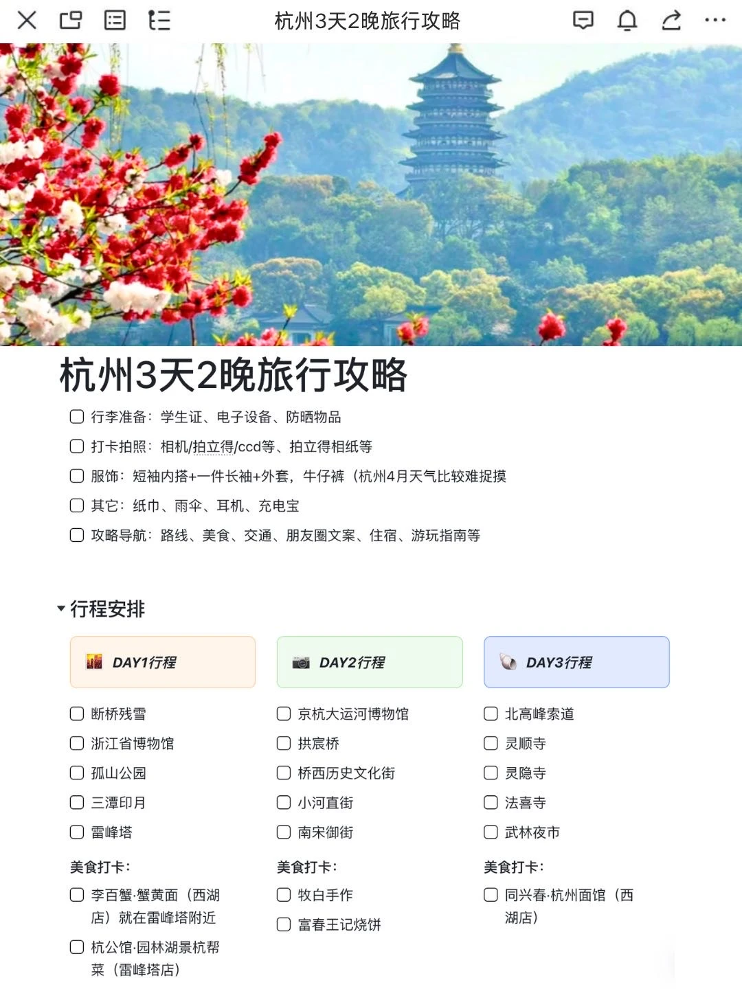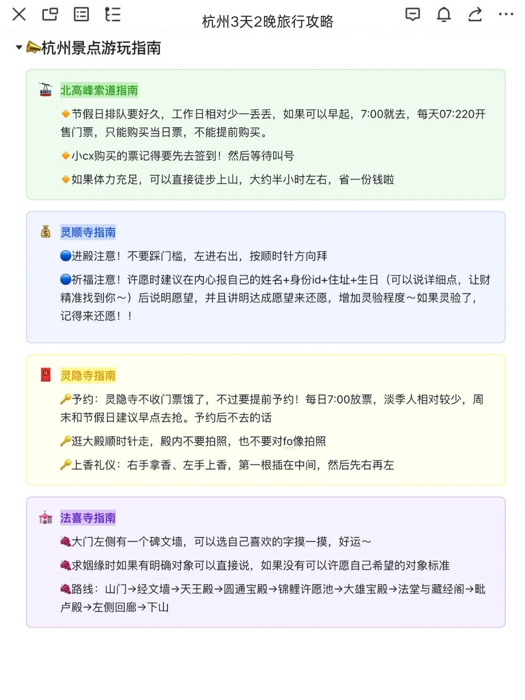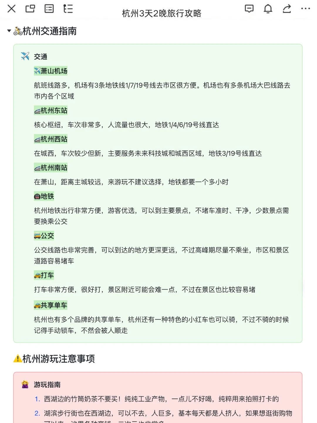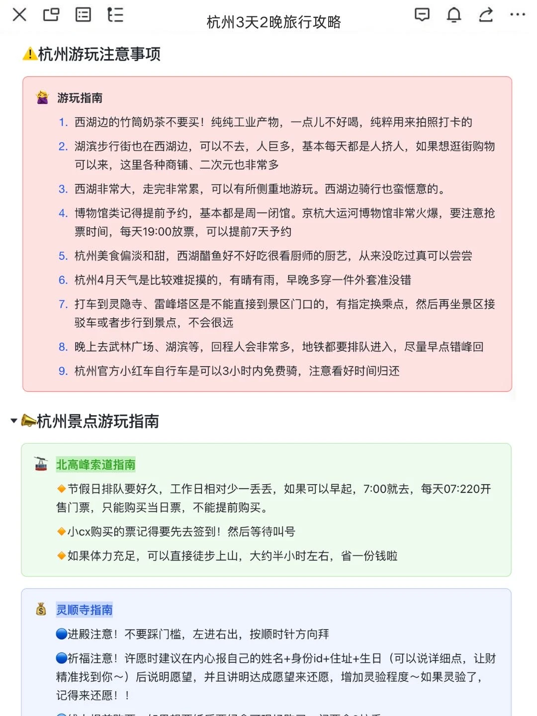 还有游玩指南,小白来杭州也可以玩得尽兴,吃得美~