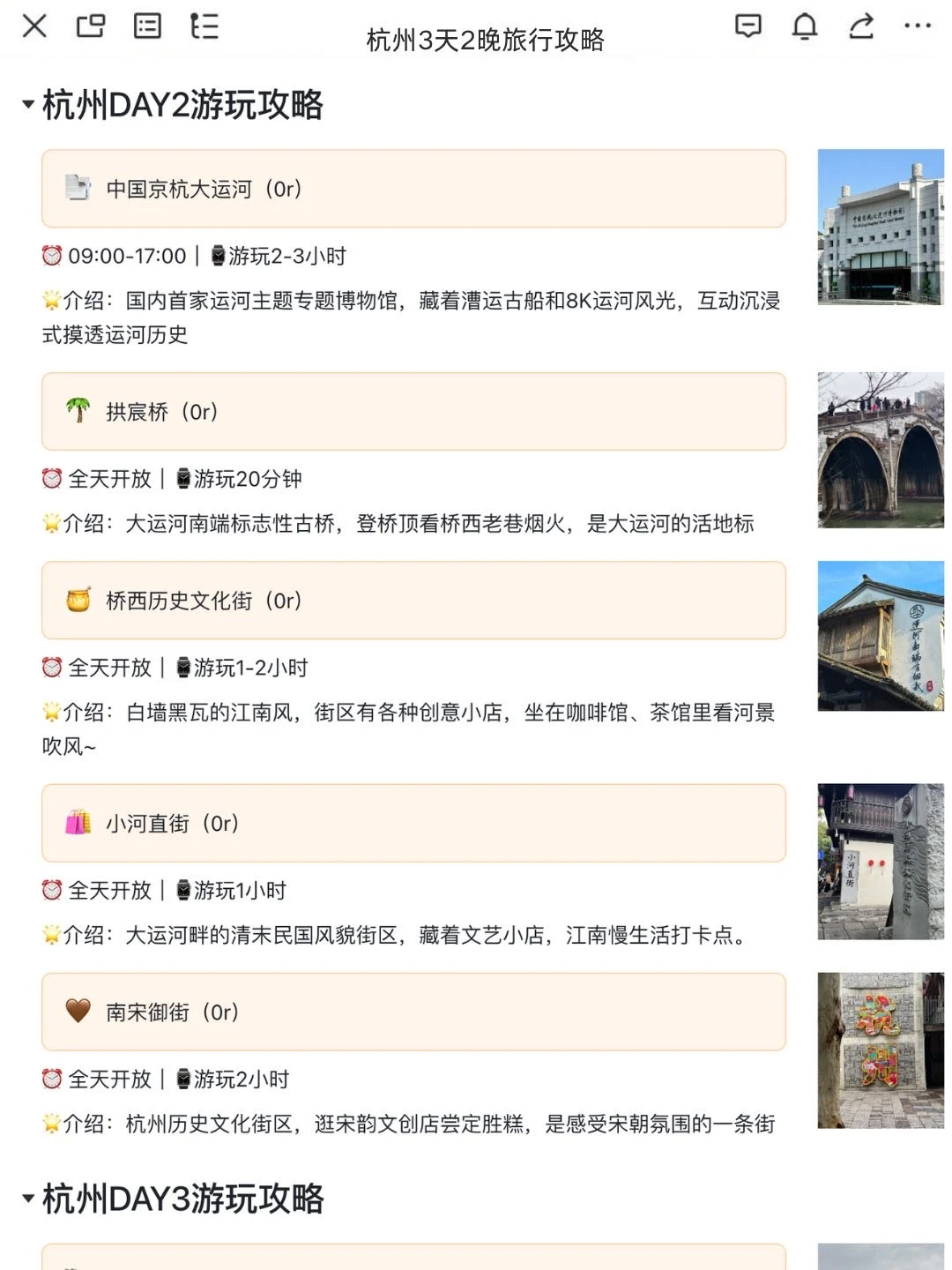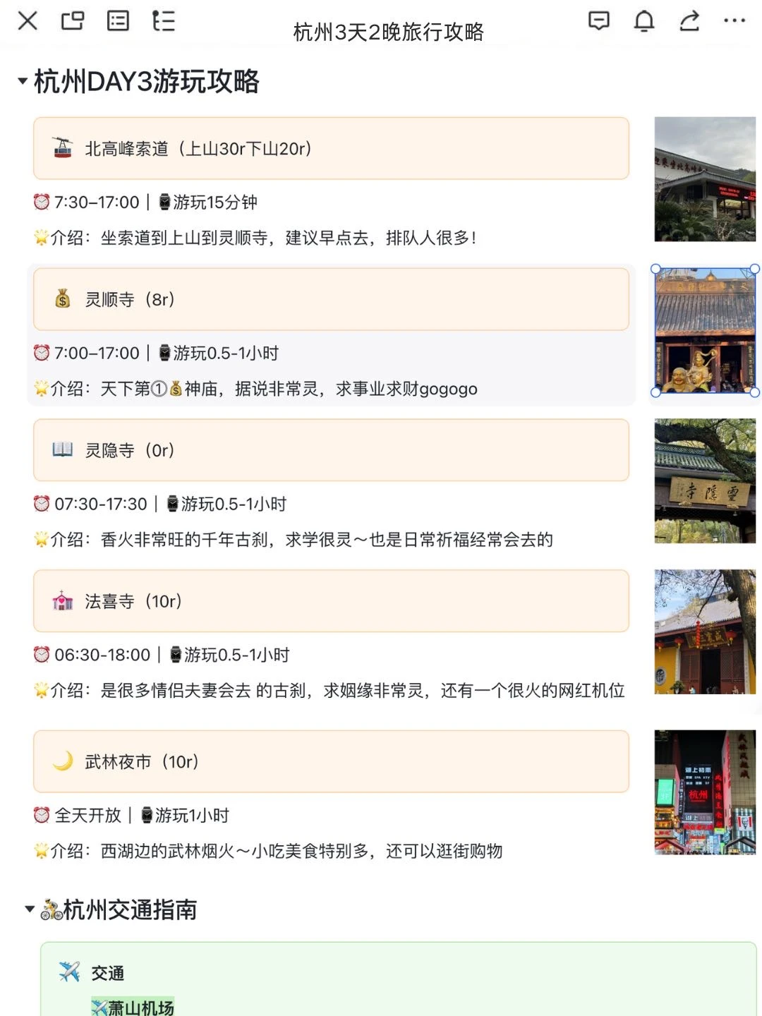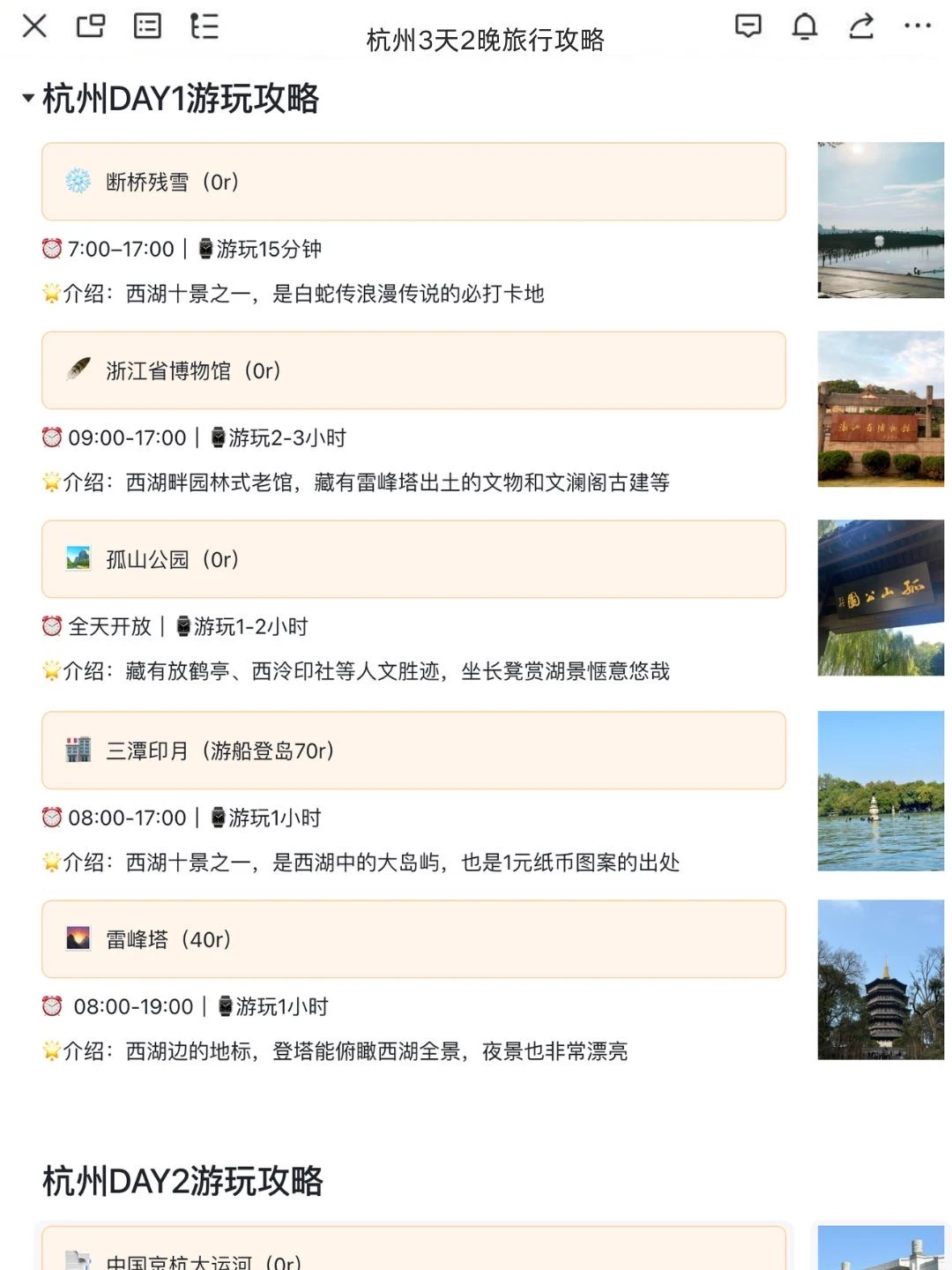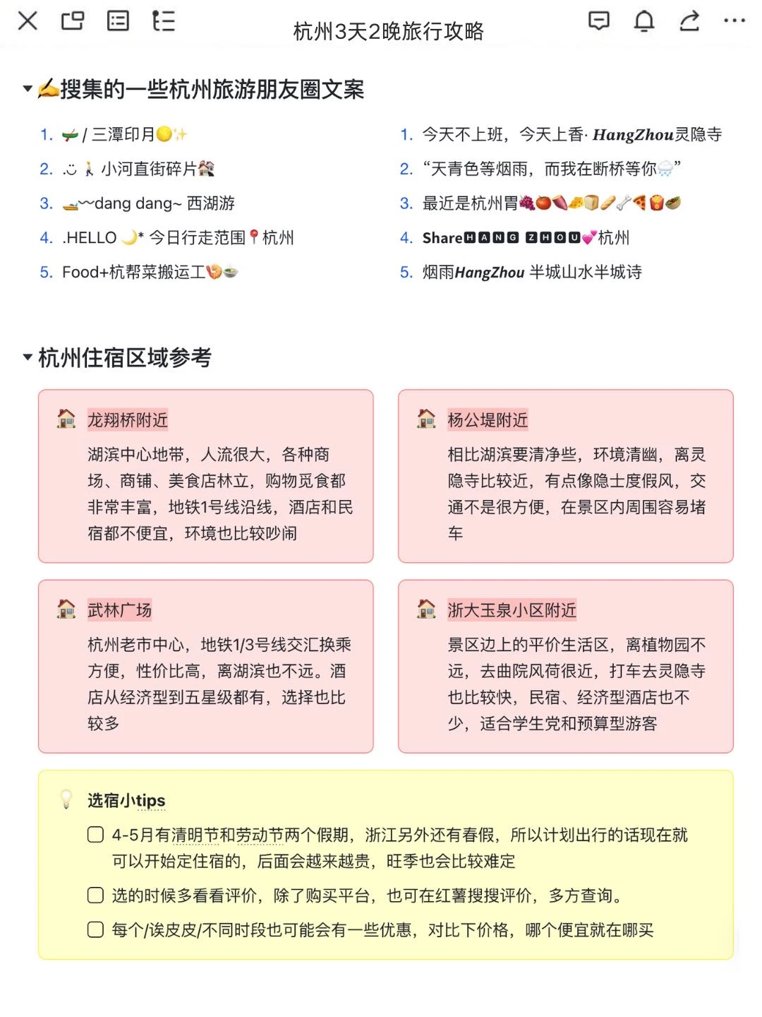 还有游玩指南,小白来杭州也可以玩得尽兴,吃得美~