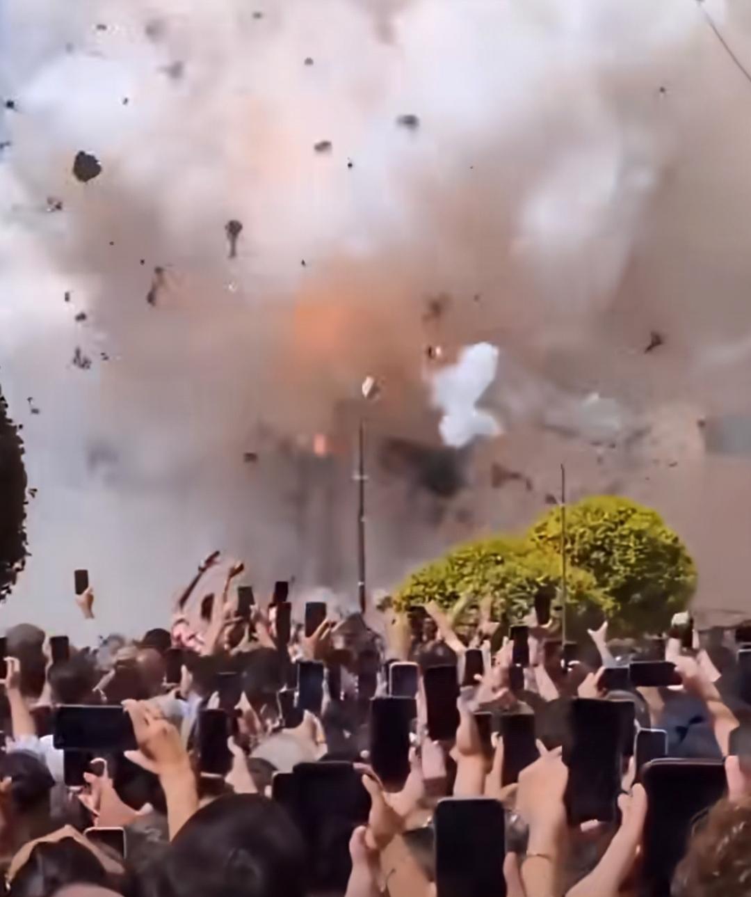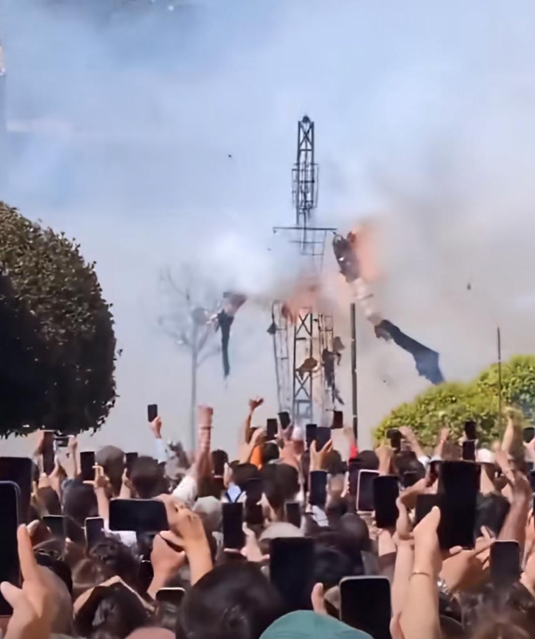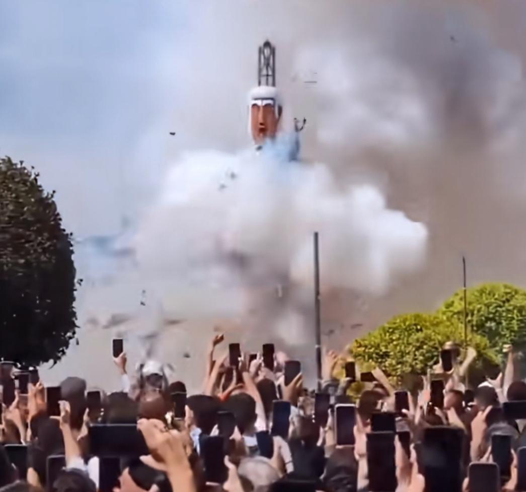 最后在大家的欢声中,这个扎好的人像被炸了个粉碎!