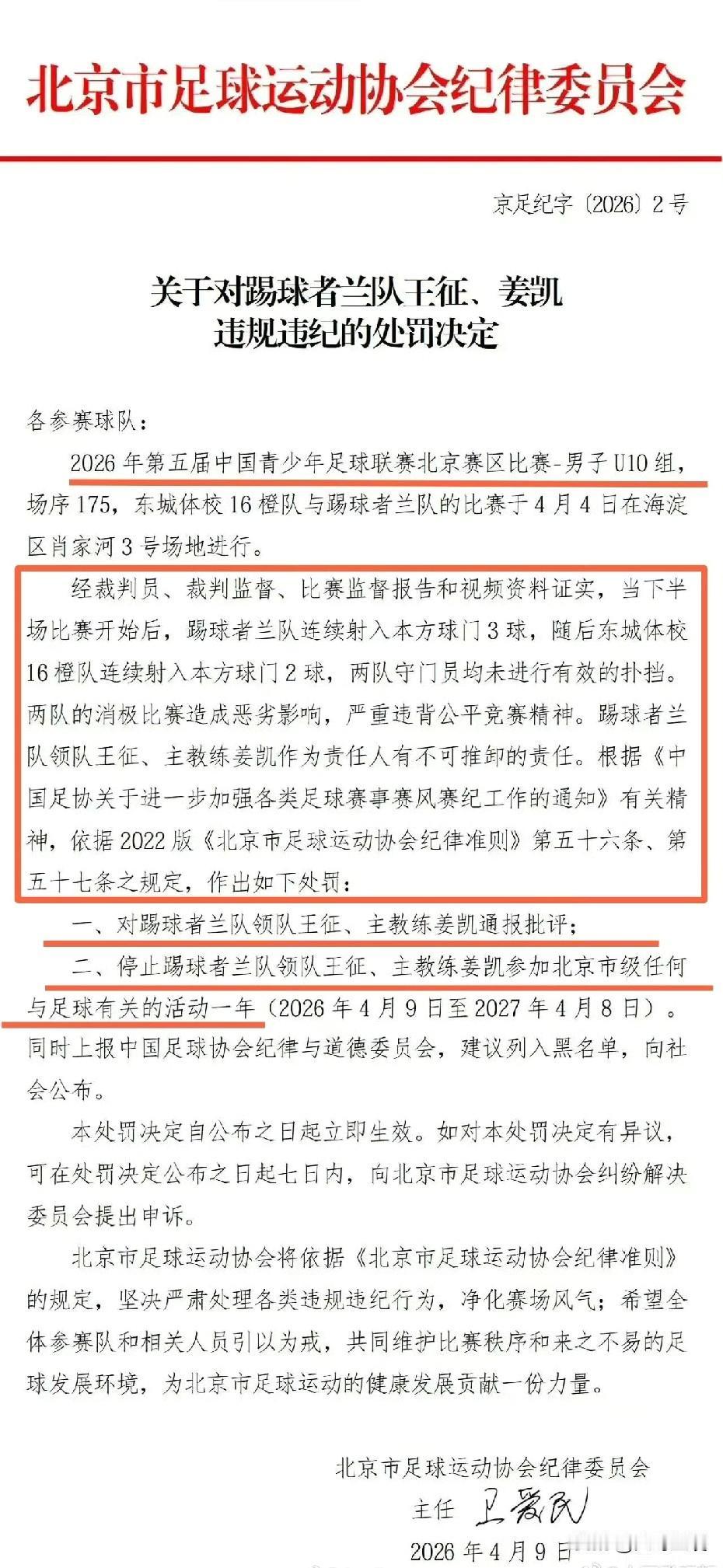 不出意外的话!这两个参与中青赛北京赛区U10虚假比赛的球队的主教练和领队,将面临全国范围内的终身禁赛,这个影响确实太恶劣了,直接影响到孩子的三观教育了[得意]