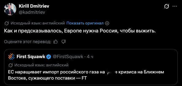 俄罗斯总统特使基里尔·德米特里耶夫一句话戳破真相:“欧洲要想生存,就离不开俄罗斯。”