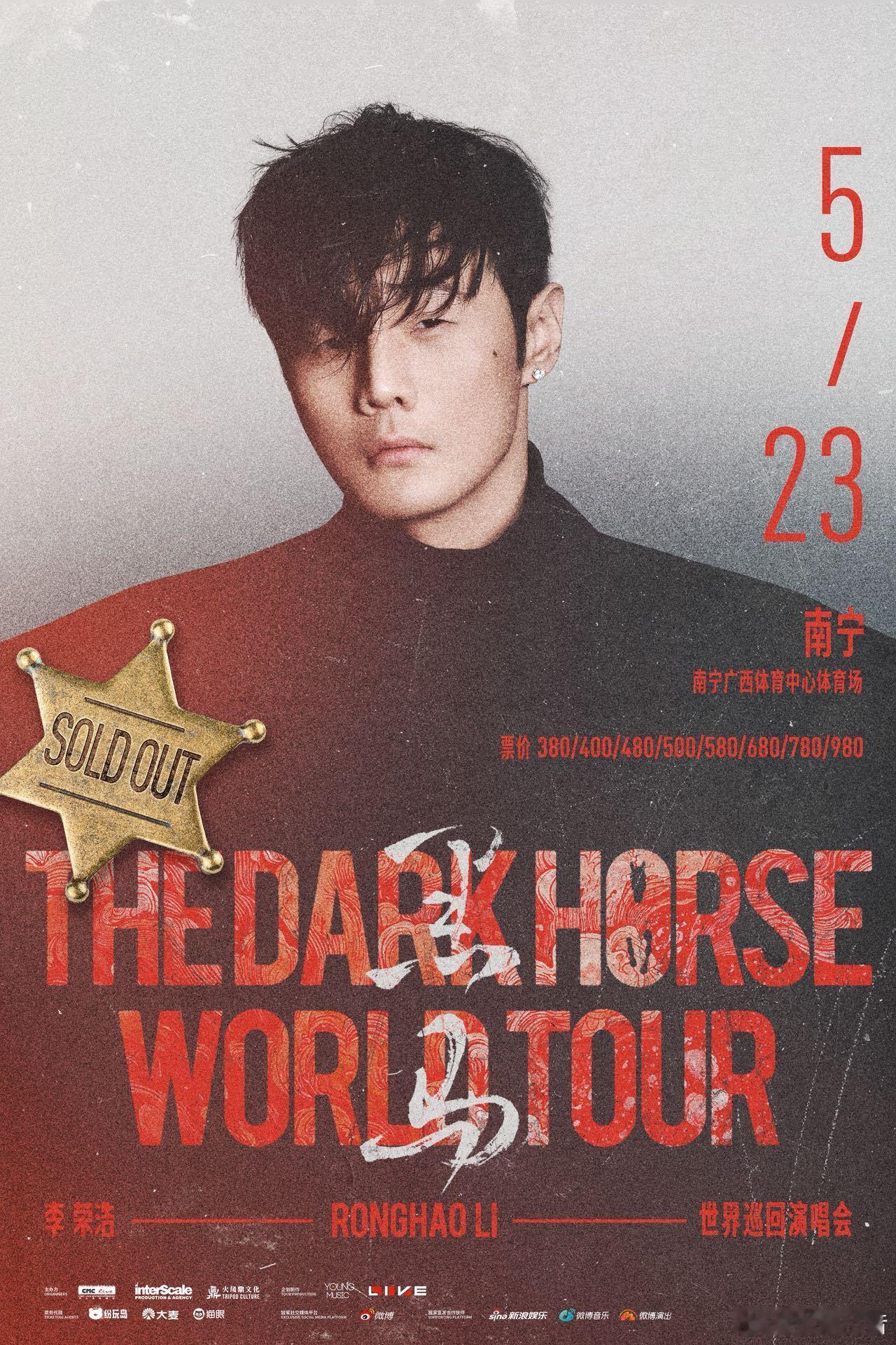 李荣浩南宁演唱会售罄 李荣浩黑马世界巡回演唱会南宁站门票预售售罄!巨型黑马舞台、全新编曲、超多金曲、乐器轰炸……5月23日,南宁广西体育中心体育场,唤醒心中黑马,一起奔赴这场超燃音乐之旅!李荣浩南宁抢票