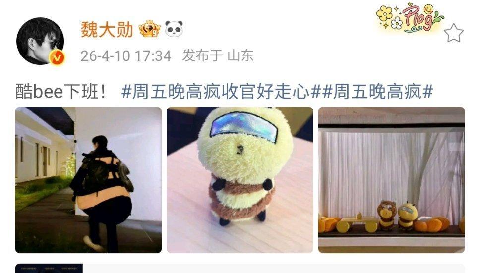 魏大勋酷bee下班我们的酷bee下班啦!准时杀青下班!期待我们第二季再见!魏大勋