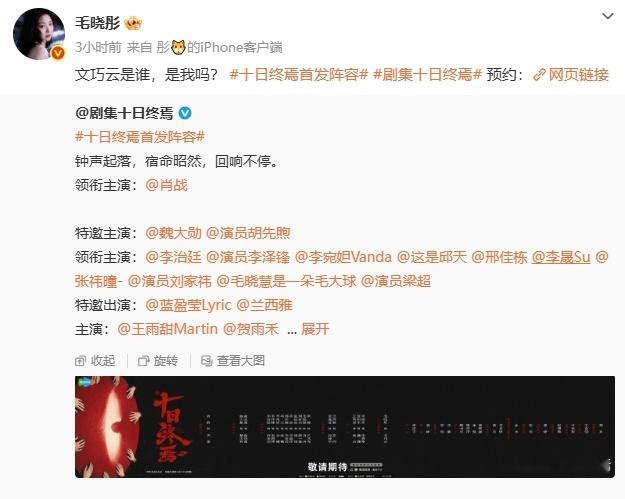 毛晓彤没点演技演不了文巧云毛晓彤文巧云适配度 毛晓彤演文巧云真的太绝了!文巧云这种被困在回忆地狱里、精神反复崩溃拉扯的复杂角色,真的太考验演技了,毛晓彤把那种绝望又疯魔的破碎感演得淋漓尽致,完全就是角色从书里走出来了!(cr:网络)十日终焉剧版