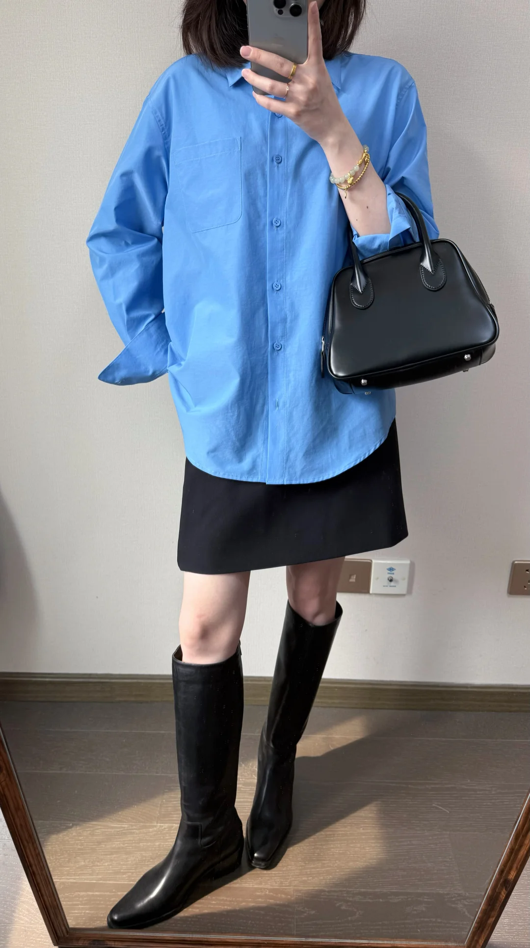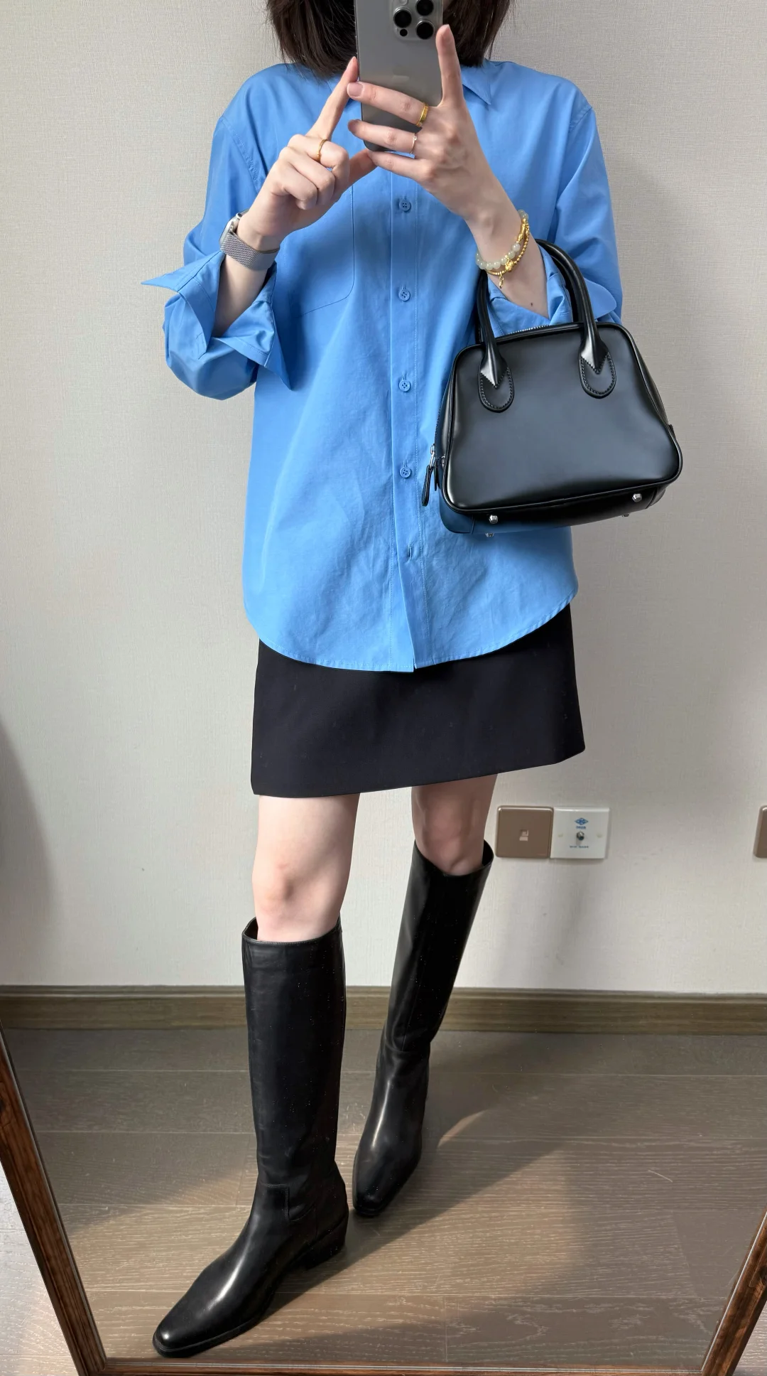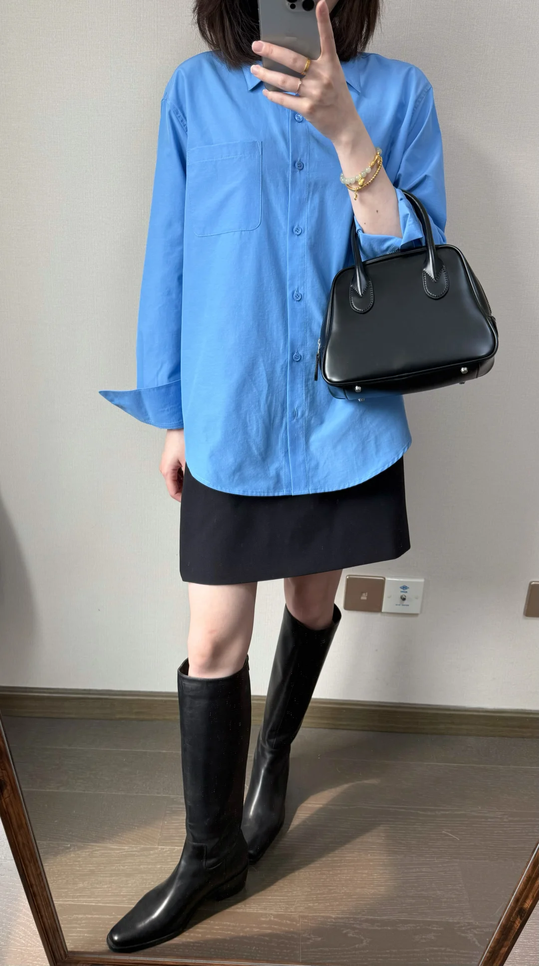 cleanfit简单出门 极简穿搭 通勤穿搭 氛围感衬衫 衬衣穿搭 早春穿搭 期待春天穿搭 蓝色衬衫