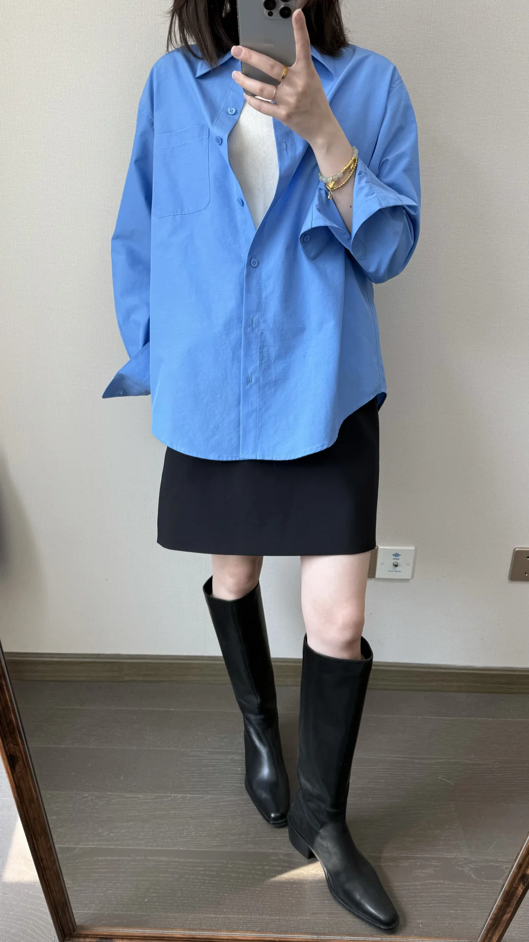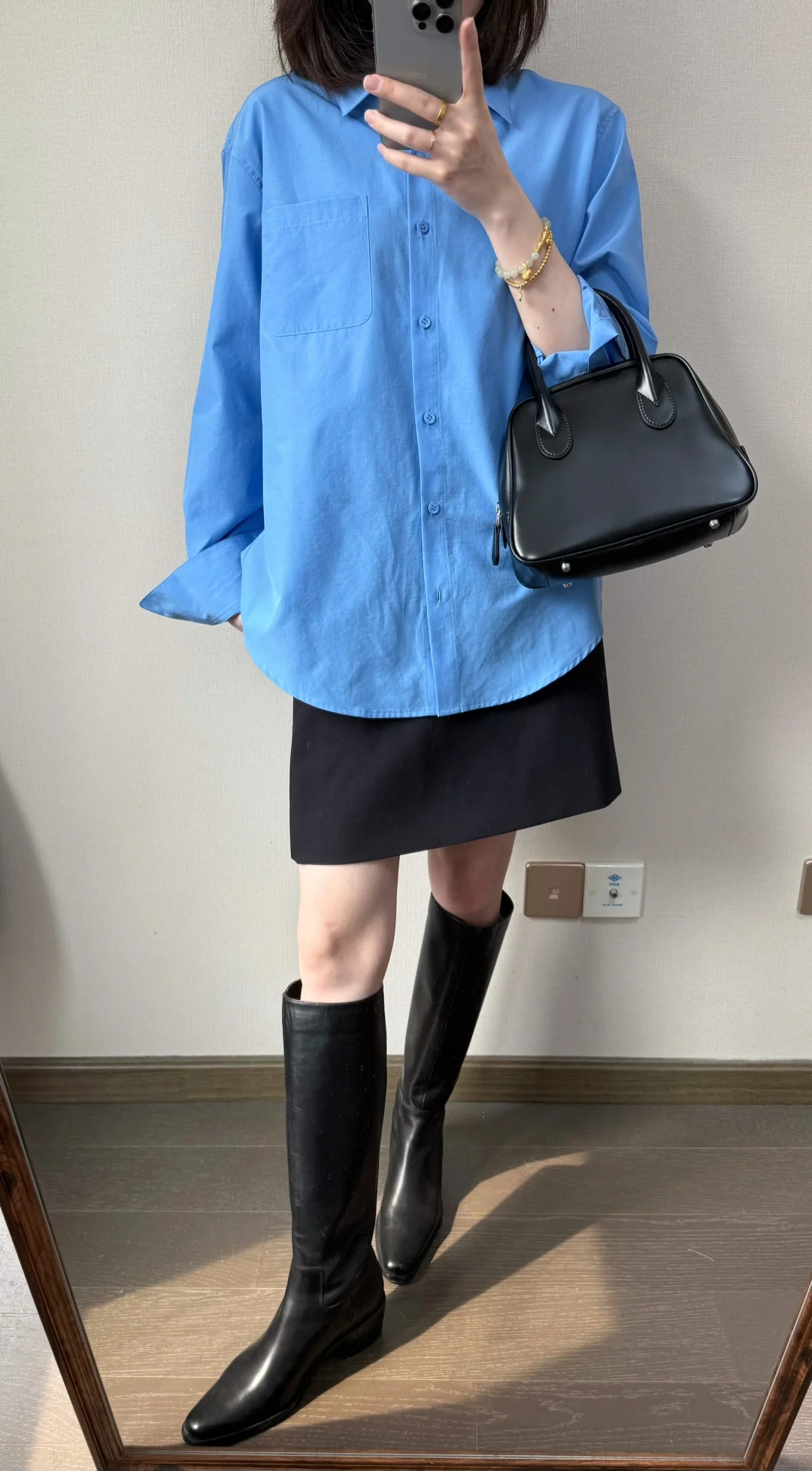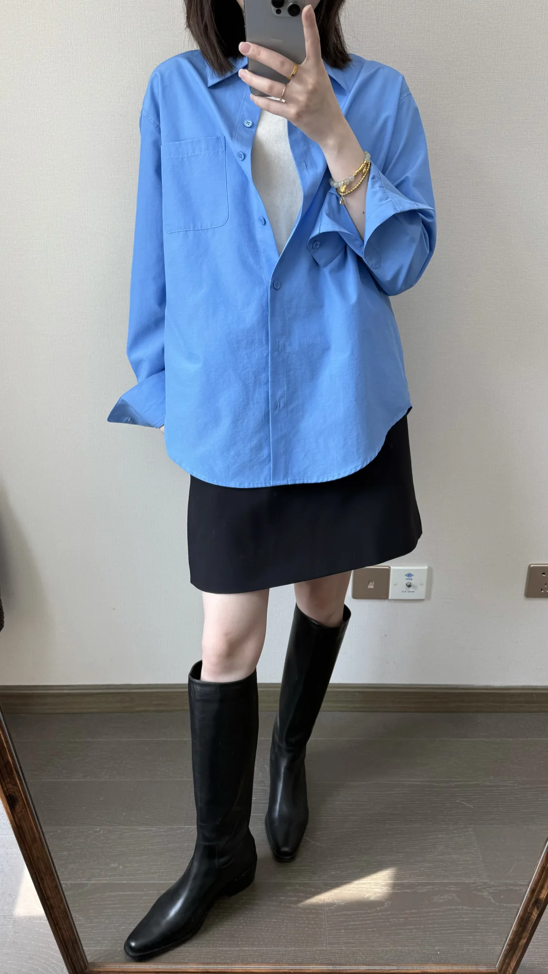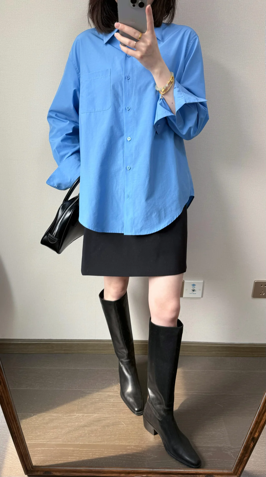 cleanfit简单出门 极简穿搭 通勤穿搭 氛围感衬衫 衬衣穿搭 早春穿搭 期待春天穿搭 蓝色衬衫