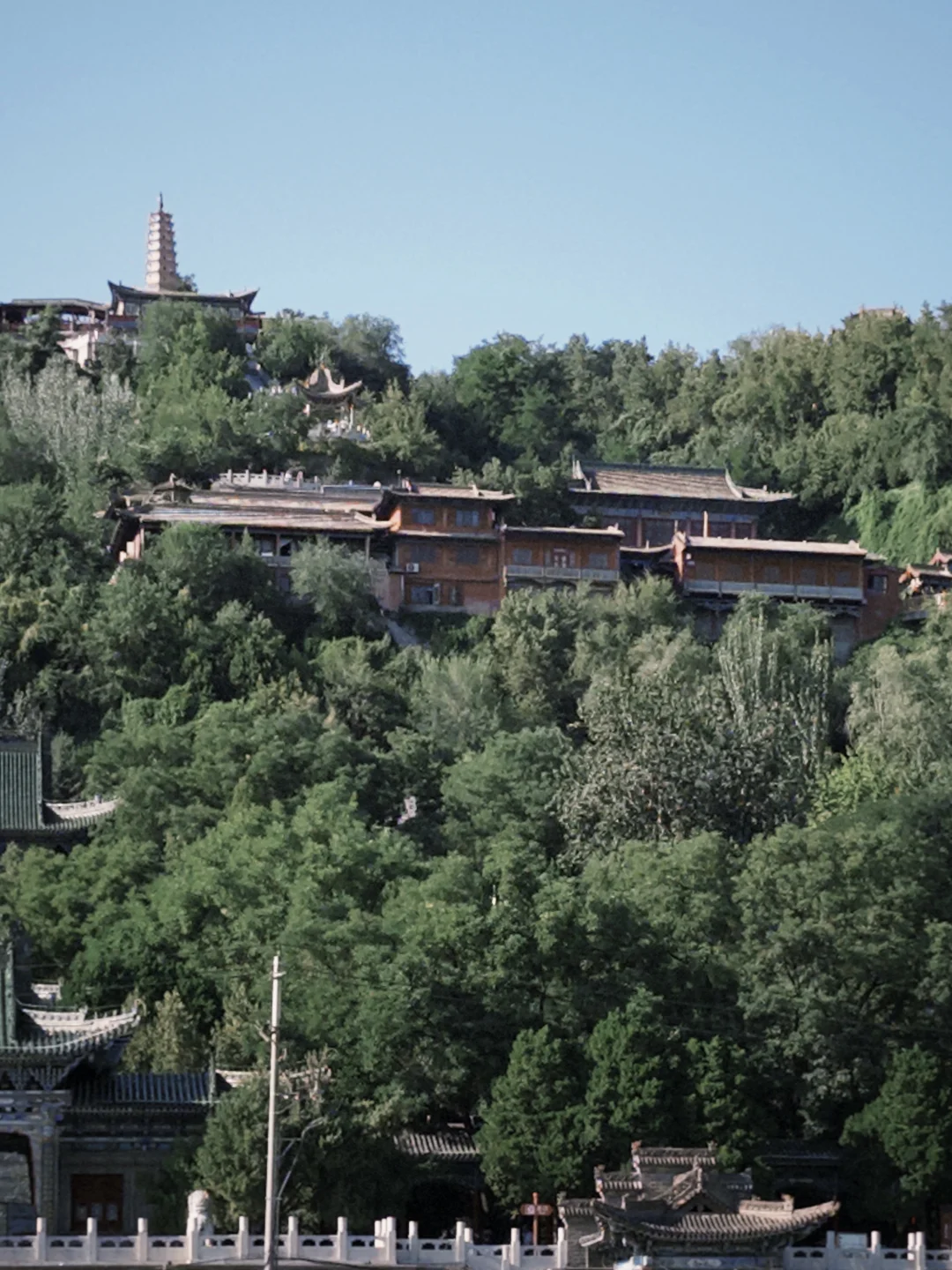 [向右R]白塔山:中山桥走到头,正对着的山上就是白塔山公园。虽然山不高,但对于我这种缺乏锻炼的人来说,还是挺累的,上下山+拍照总共1个多小时,山顶有个白塔,一路爬升都可以俯瞰到黄河和兰州市区,还是很美的。