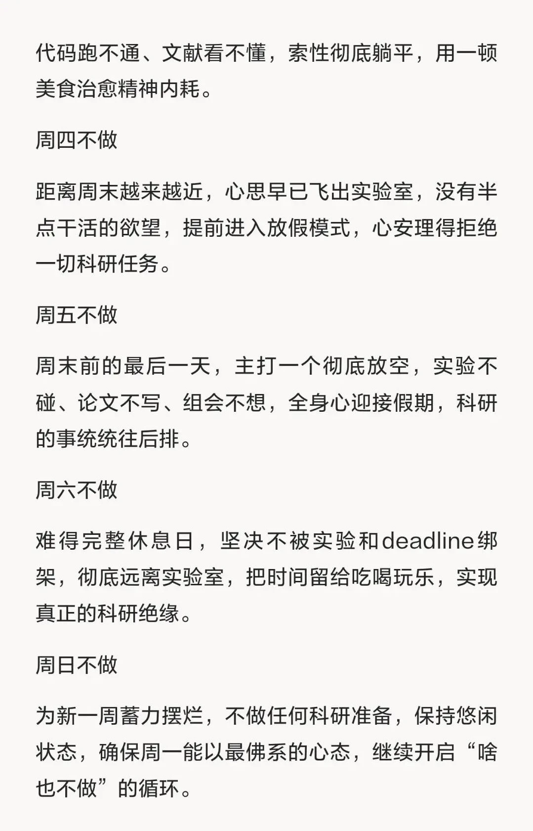 刚从假期缓过来,身心还没进入科研节奏,与其对着电脑发呆耗时间,不如安心摸鱼,让实验和论文再等等也无妨。