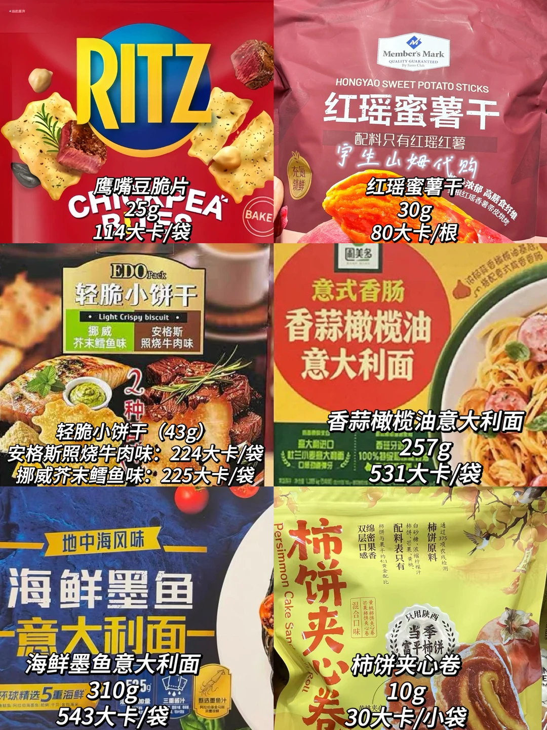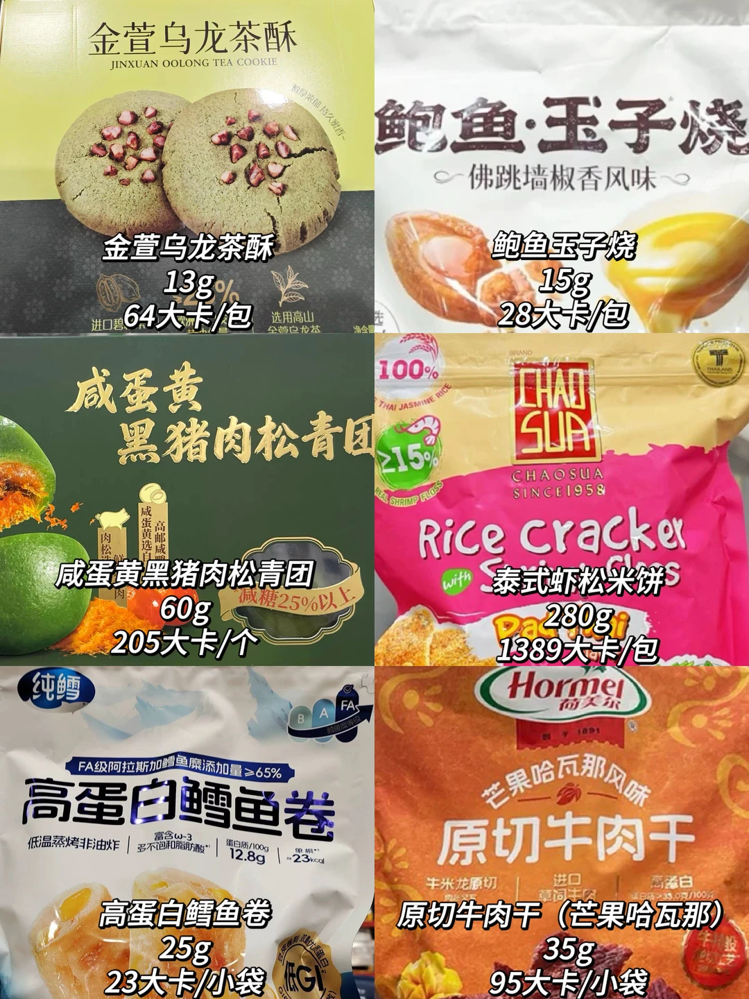✅总的来说适合我们减脂期的有鱿鱼卷、玉子烧、黑猪肉肠、意大利面、鱿鱼丝、燕麦曲奇这些低卡高蛋白的零食!比较适合我们管理期!其他的款要着重看一下热量哦~