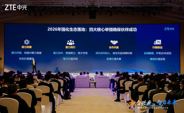 针对2026年生态发展重点,王翔向合作伙伴明确了核心方向:围绕“开能力、强合作、共利益、优赋能”四大核心举措,持续深化与生态伙伴的全方位合作。其中,“开能力”聚焦核心能力层、基础设施层、能力平台层、应用层、终端层,全面开源开放核心能力,依托架构级协同优化优势,提升系统兼容性与性能,与伙伴共建开放、高效的ai算力底座;“强合作”注重以客户为中心,整合产业链的优质生态资源,与伙伴能力互补,加强与伙伴在“技术-市场”的双向联动,做强ai全栈全场景能力,深耕“6大重点行业+30个垂直子行业+240个细分场景”市场。;“共利益”即深化双向投入,健全利益保障机制,打造更多元的合作模式,共享更大的商机资源池,提供更多的利益空间,优化更好的合作机制;“优赋能”则围绕技术、营销、培训、数字化服务四大维度,为伙伴提供系统性的全域赋能,助力伙伴提升核心能力与市场竞争力,同时全面升级一站式数字化服务体系,基于co-claw,为伙伴提供更“智”“惠”的智能助手,全面向市场释放“中兴+伙伴”的协同合力。