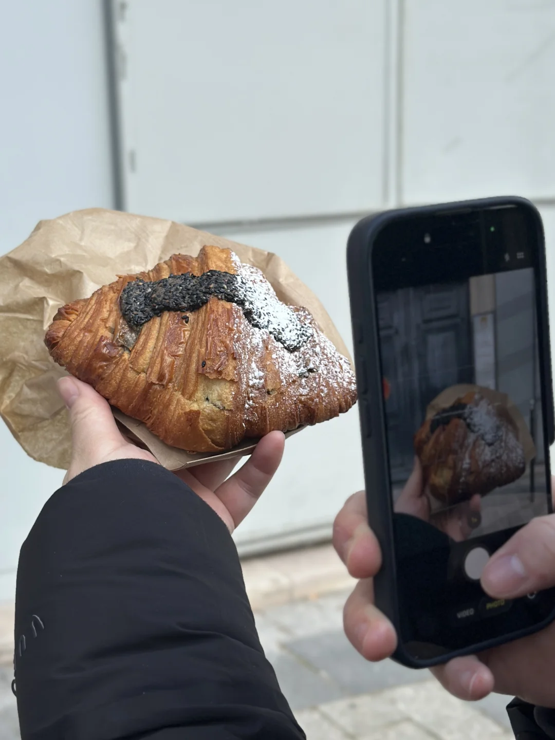 在玛黑区路过被吸引的面包房。黑芝麻羊角包还不错!用料扎实!可以吃到芝麻颗粒感!