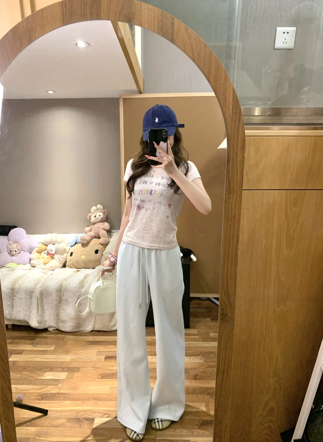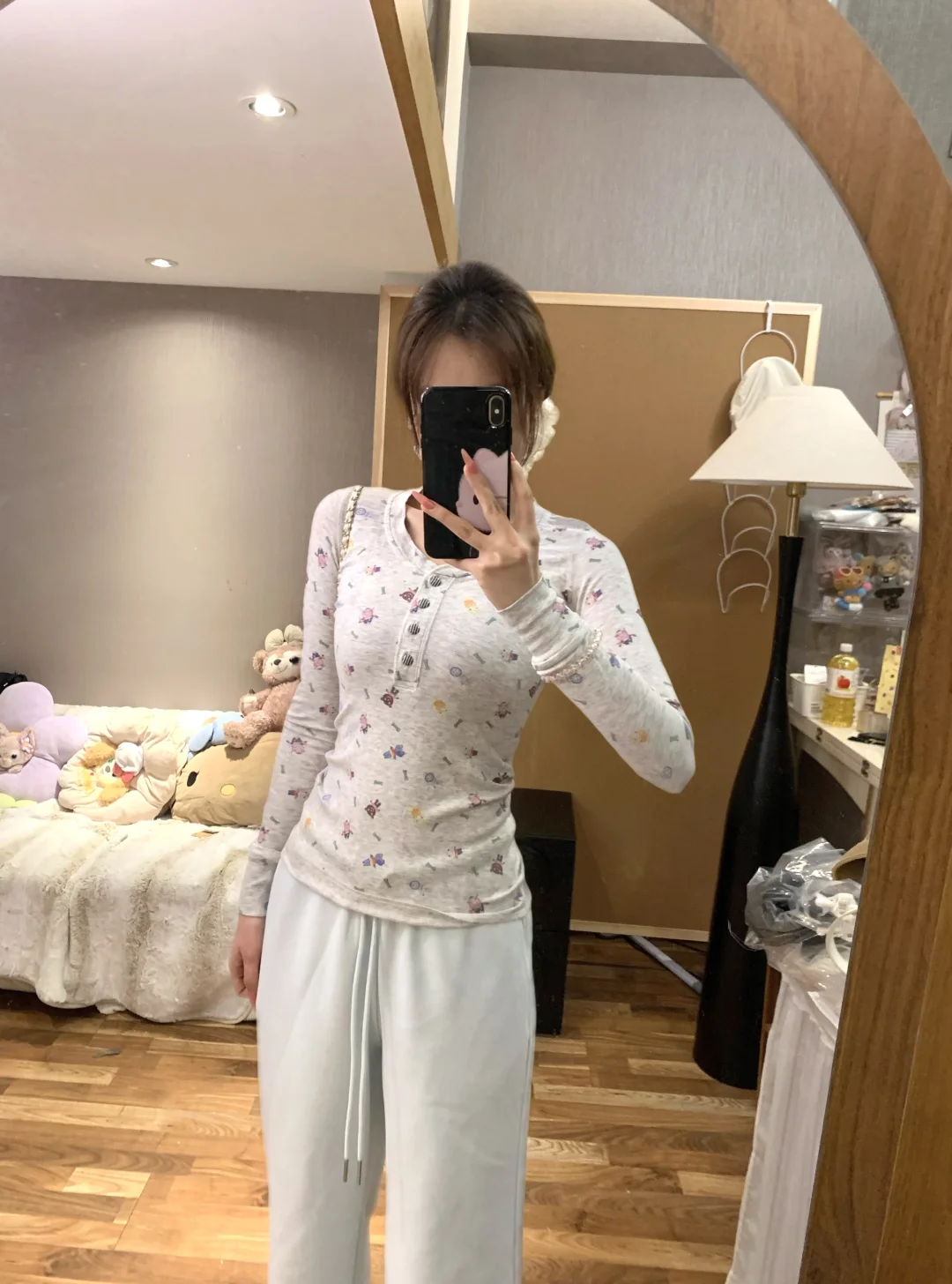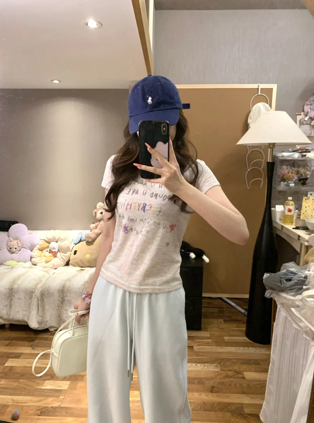 闺蜜!你们前几天要的蘑糯糯蓝色卫裤搭配