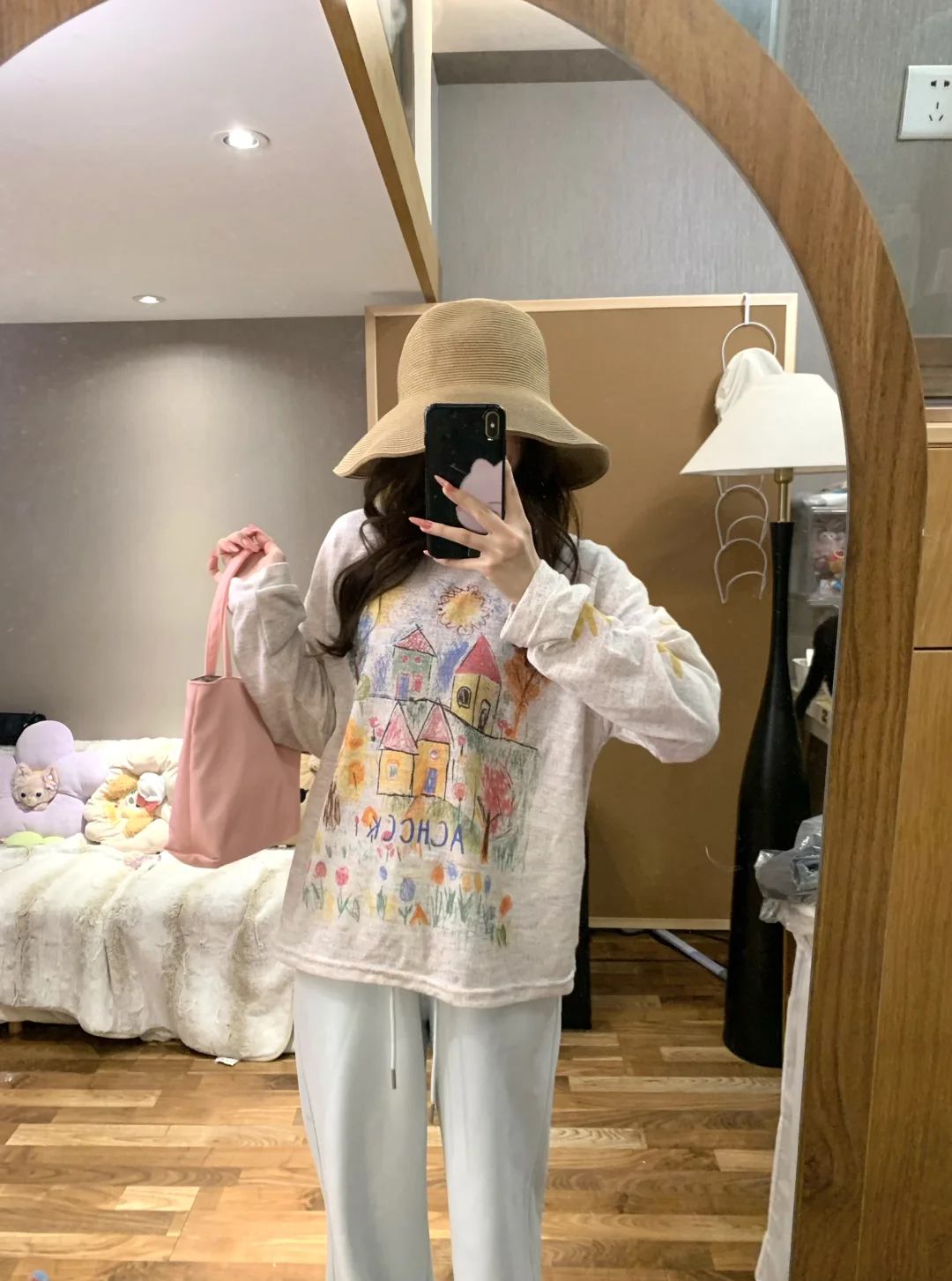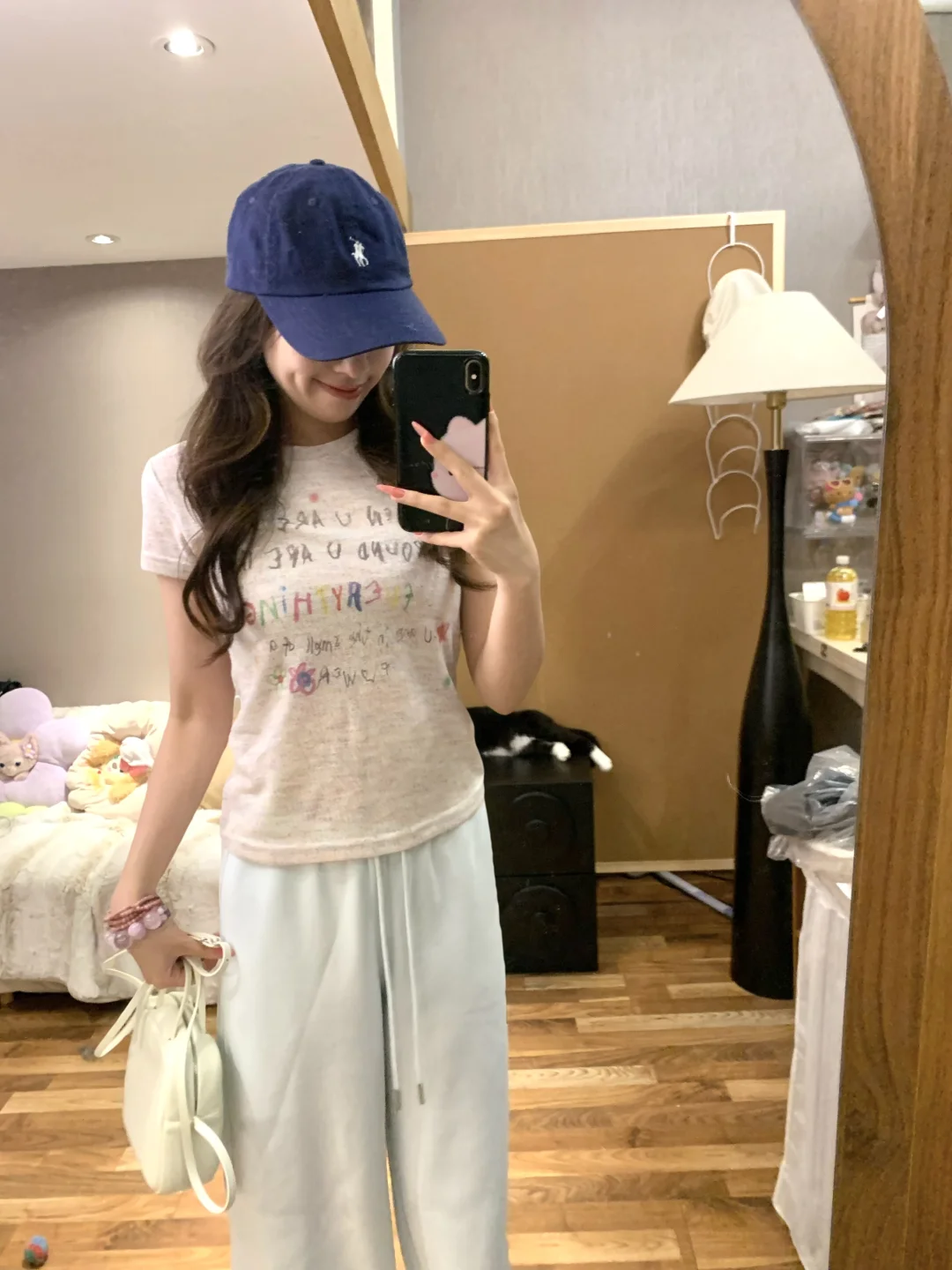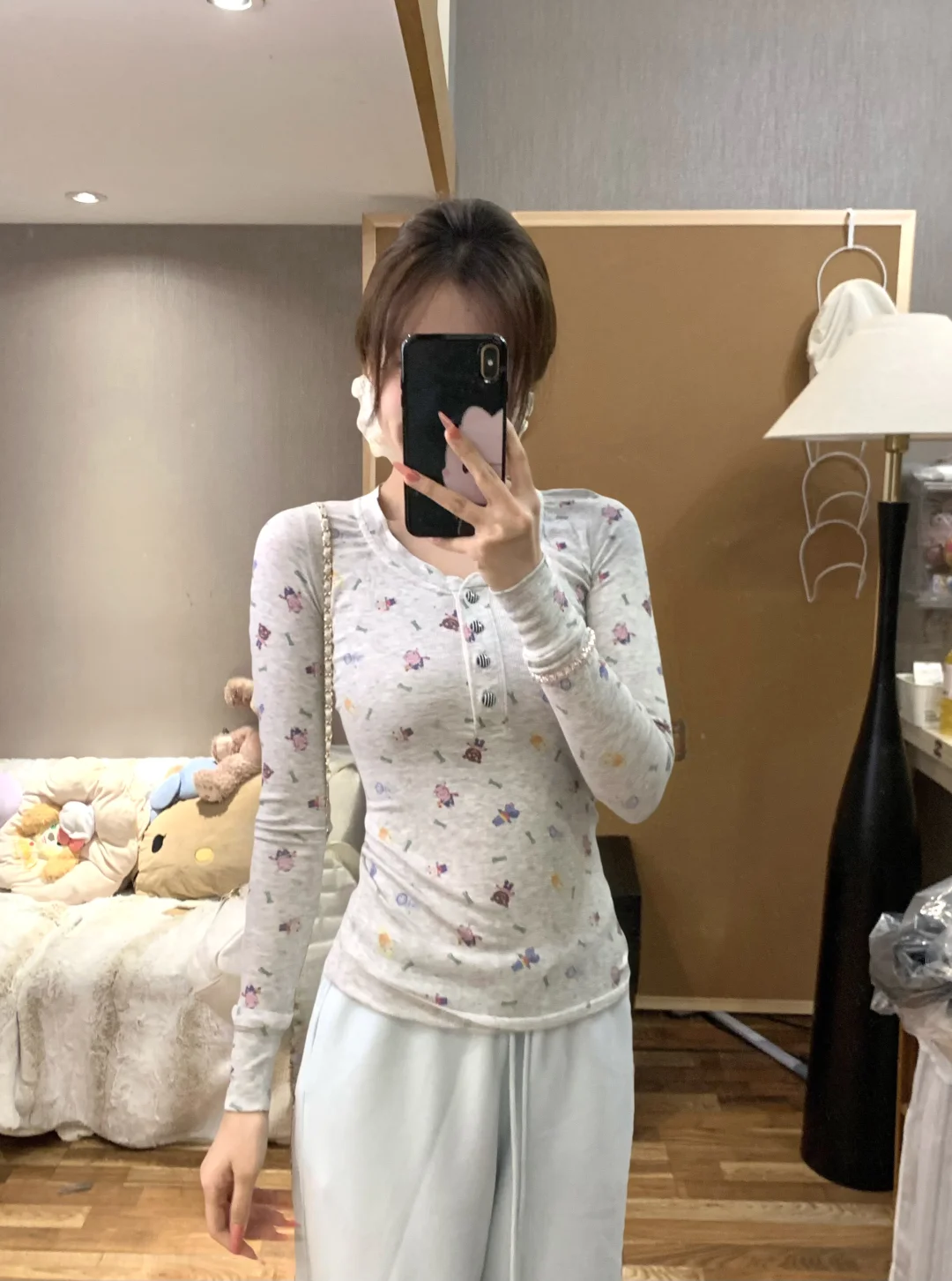 闺蜜!你们前几天要的蘑糯糯蓝色卫裤搭配