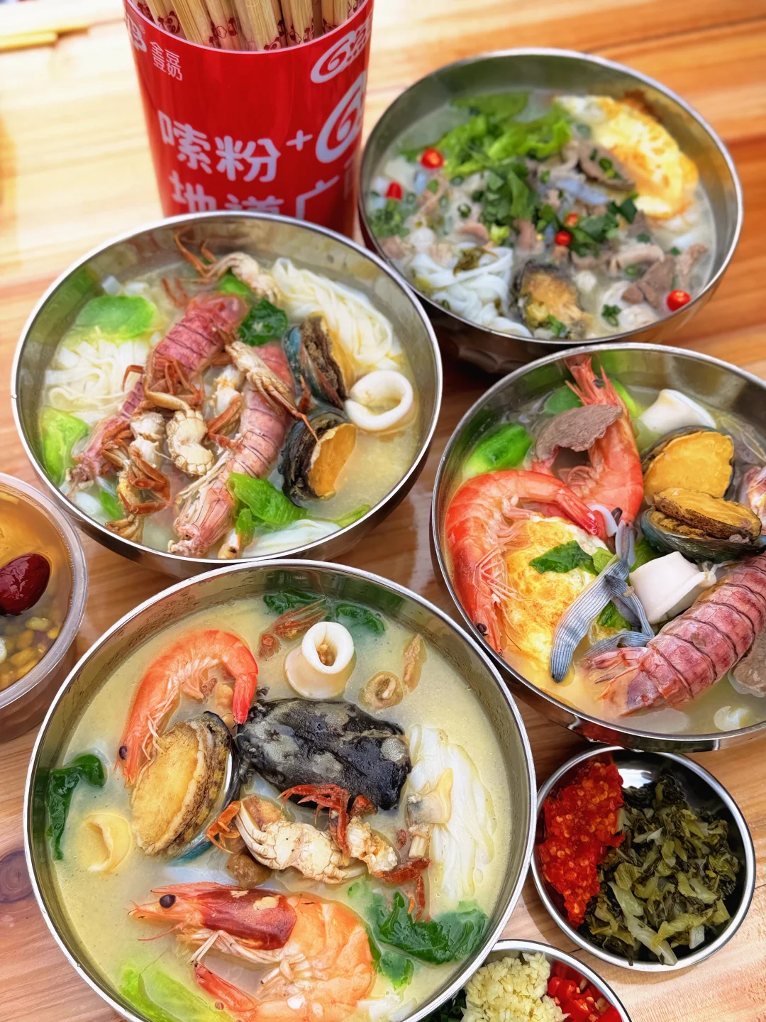 早餐直接二刷!鲜到上头的海鲜粉,昨天吃完脑子想念不停,鲜爽汤底+自选海鲜料,百吃不厌,返程前都想再嗦一碗。