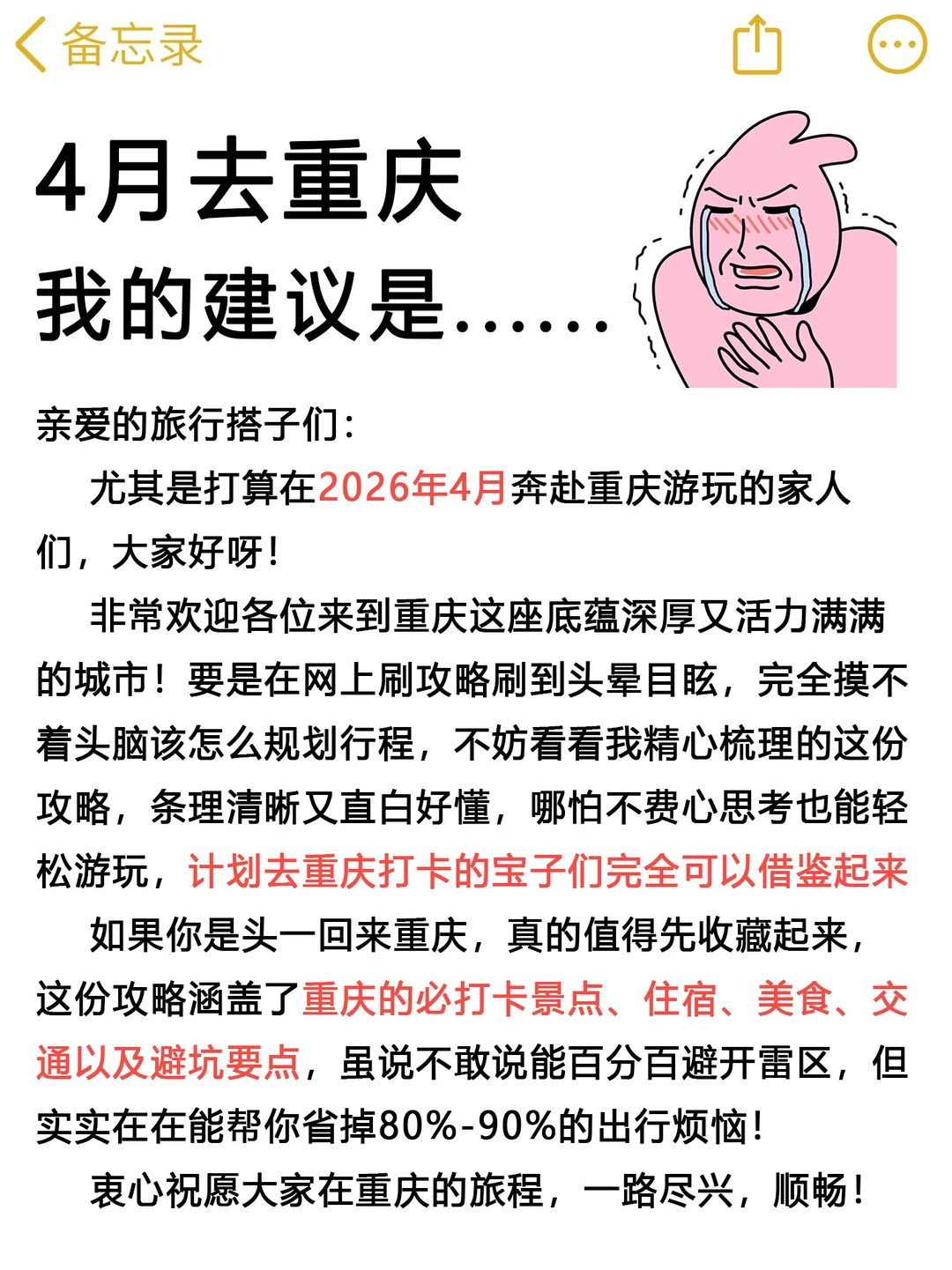 打算4月奔赴重庆游玩的赶紧来看,这篇简单明了的重庆游玩能帮你避免80%~90%的烦恼✅