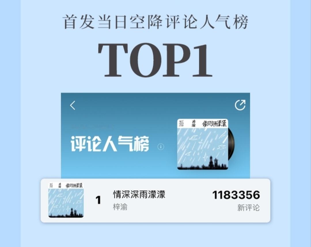 梓渝情深深雨濛濛战报梓渝翻唱新歌九榜第一空降QQ音乐热搜🔥上线12秒 评论破999+!上线8分32秒 评论破500000+!上线19分40秒 评论破1000000+!