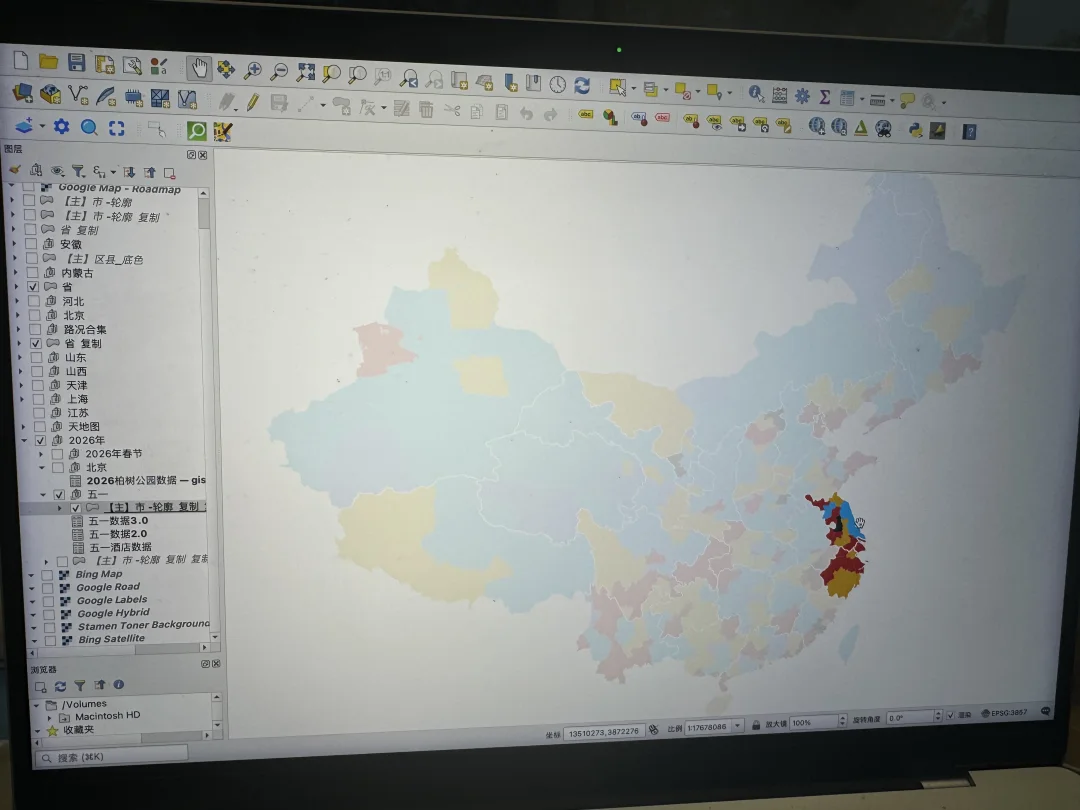 另外,我在试着怎么把全国的一张图弄出来,但城市太多了,放出来部分地方太密了,字都看不清。