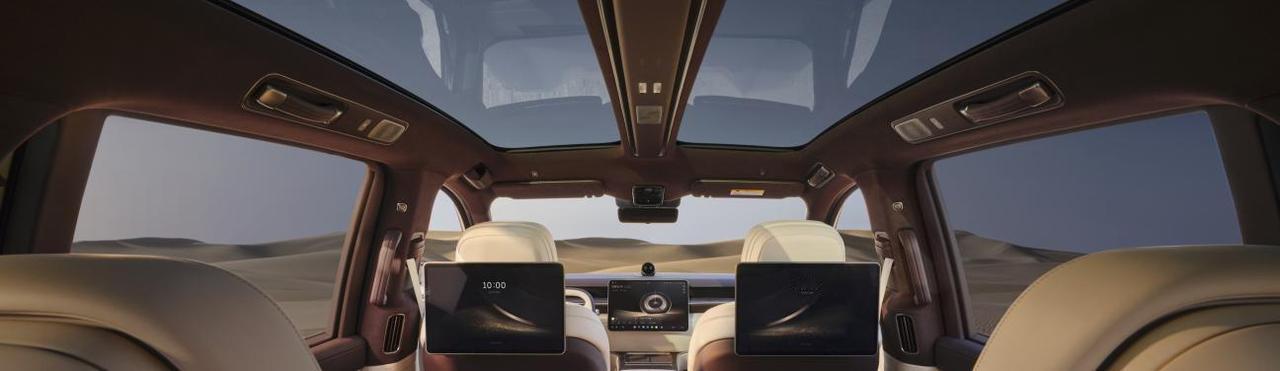 声学旗舰:九霄天琴 9.2.4.8 沉浸声系统,47 个扬声器、3020W 功率,搭载 100% 纯钻石高音单元;120km/h 时速车内噪音仅 59.2 分贝,全球首个全舱三杜比认证座舱,移动音乐厅实锤。