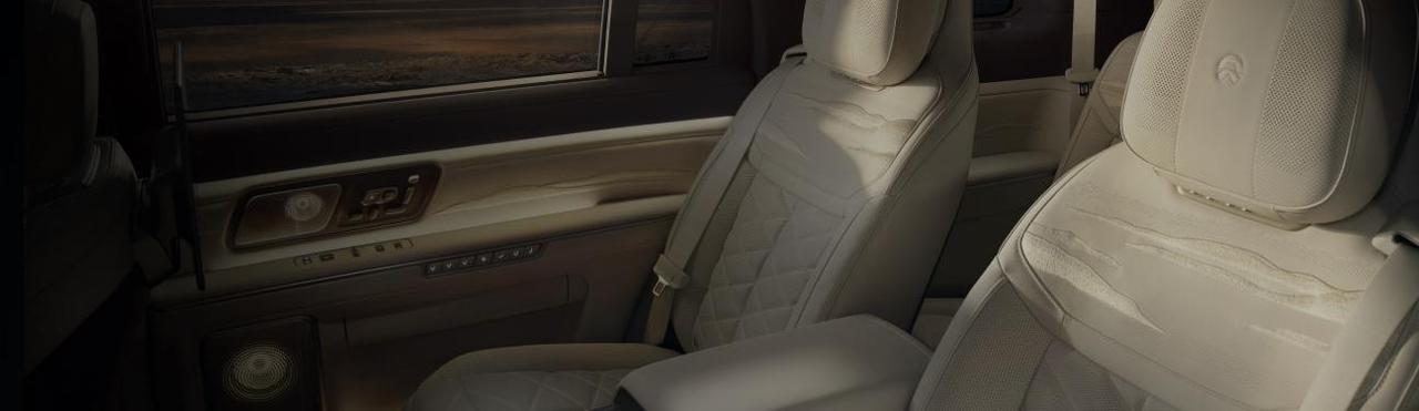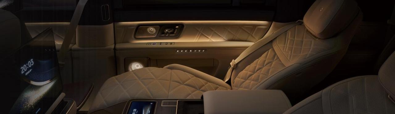 舒享旗舰:二排飞航零重力座椅,2.3 米连贯椅面 + 42 点全维按摩,首创 20 点机械足底按摩;全球首发 LC 智能隐私调光车窗,智能行政中岛搭配双 16 英寸行政屏、视频会议系统与磁吸茶台,商务舒享两不误。