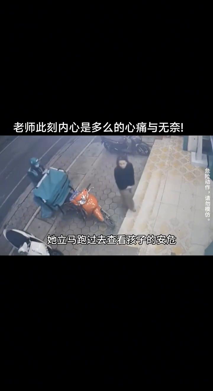 老师此刻内心是多么的心痛与无奈。 注意看,眼前这位外卖小哥接孩子的画面,把站在台