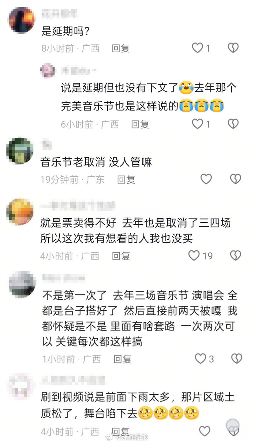 【桂林#一音乐节距开幕仅两天突然通知延期#】#多方回应音乐节开幕前两天突然延期#