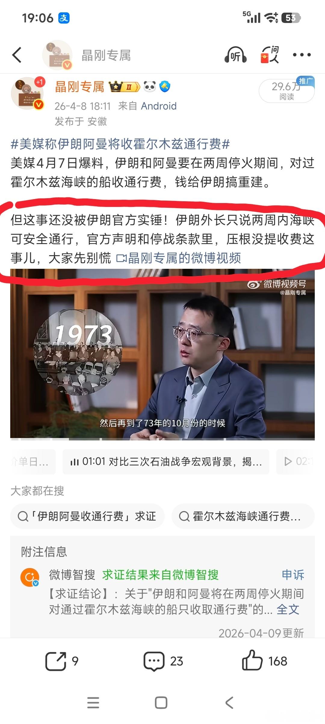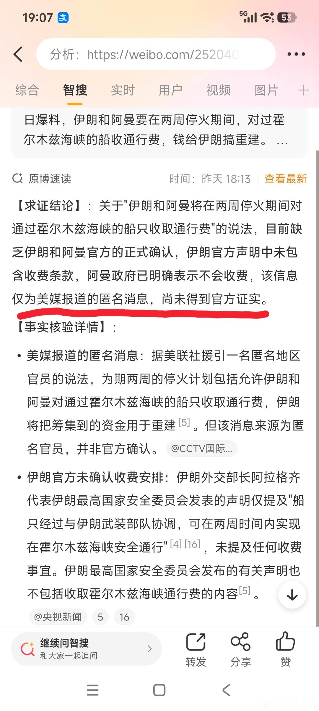 第二条关于伊朗霍尔木兹海峡收费的附注理由:这是美媒报道的匿名消息,未得到官方证实(图五)