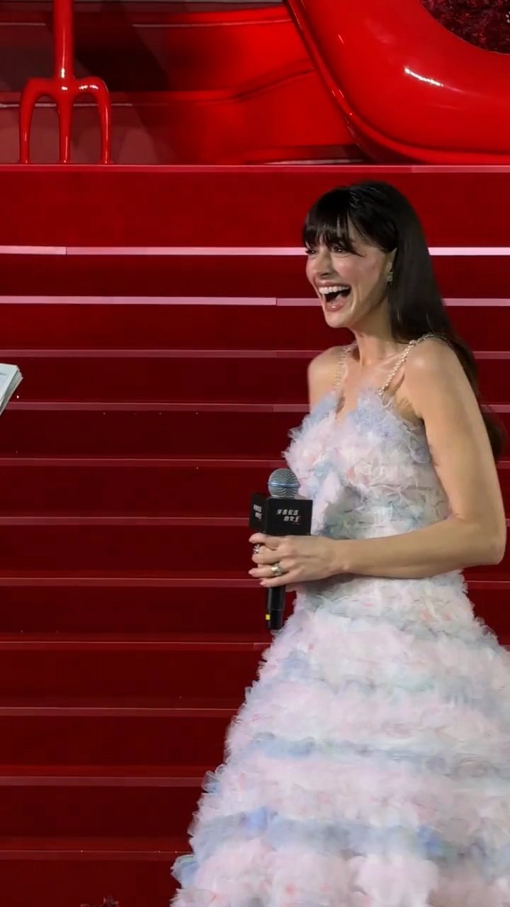 安妮海瑟薇穿了中国设计师品牌穿普拉达的女王2中国首映礼,安妮海瑟薇穿了中国设计师品牌,好用心啊