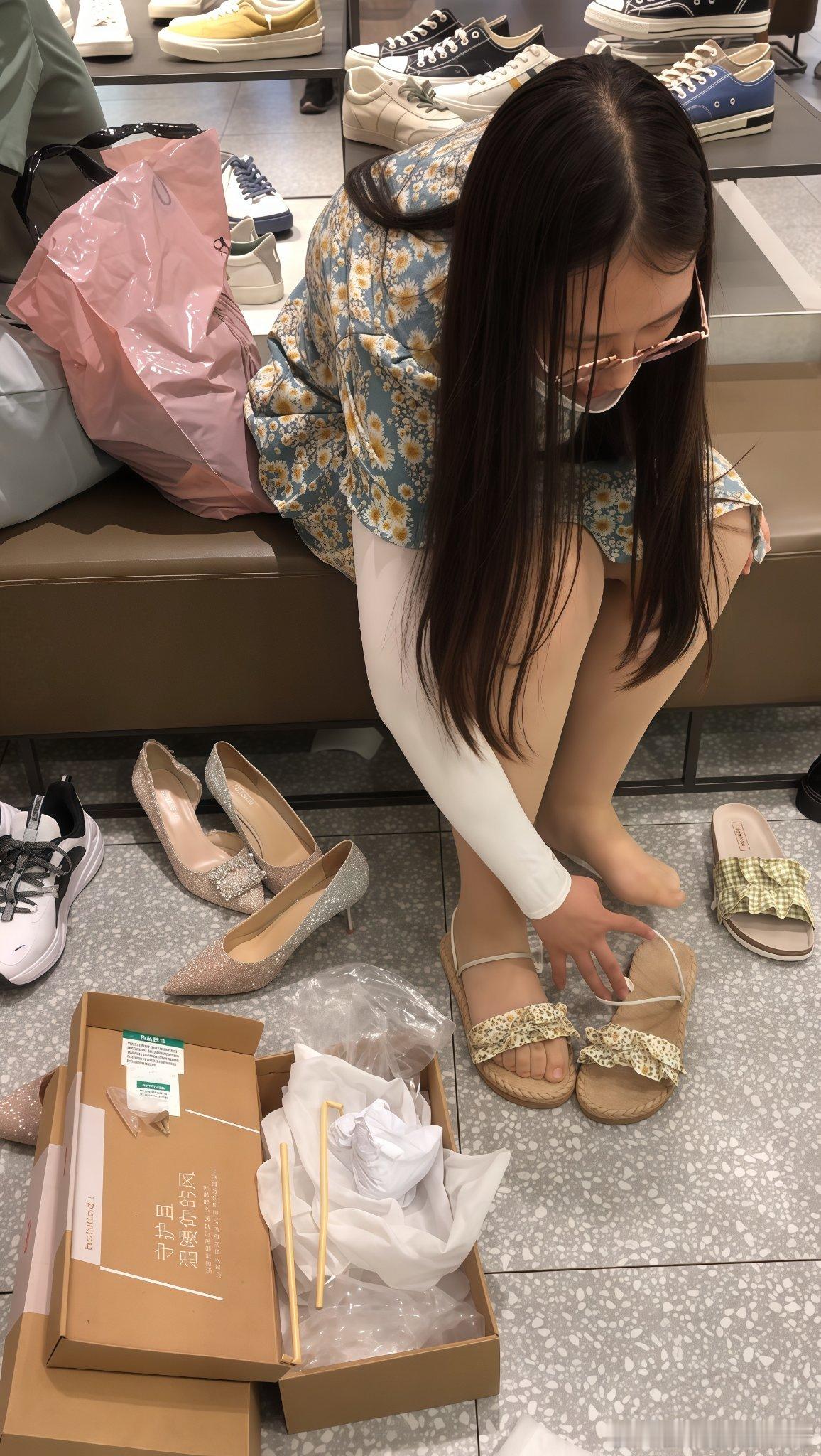 店内试鞋,哪款鞋子与丝袜更搭呢?