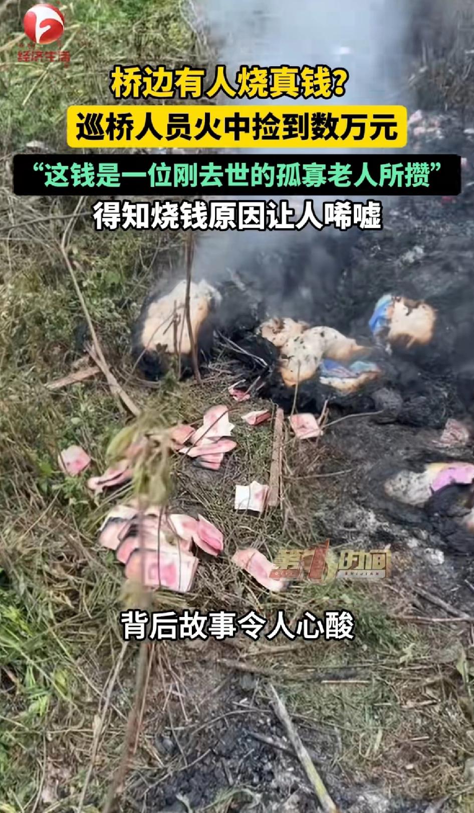 桥边有人烧真钱,巡桥人员竟捡到数万元,还是刚去世孤寡老人攒的,这事儿太让人唏嘘了。