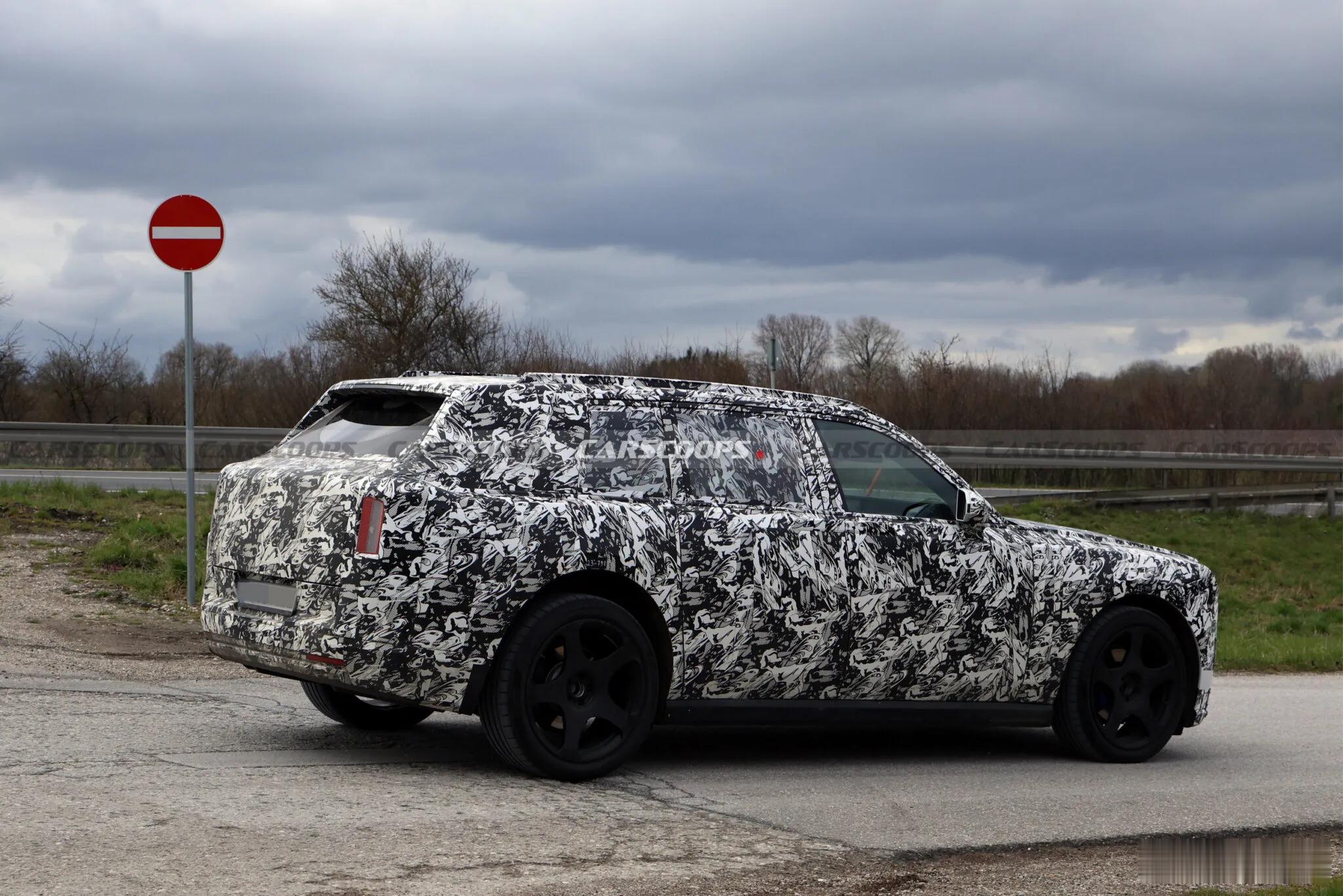 名车志谍照 【劳斯莱斯全新纯电SUV测试曝光】新车最抢眼的是复古分体式引擎盖设计,中央带脊线并保留可升降欢庆女神立标,两侧面板可像尾箱盖般向上开启;前脸采用封闭式格栅、分体式灯组与带 RR 标识的下大灯,车身轮廓接近现款库里南,车尾取消排气口、牌照框移至保险杠,纯电特征鲜明。动力预计沿用闪灵的 102kWh 电池与双电机四驱,还可能推出 Black Badge 高性能版,并融入宝马第六代 eDrive 与新世代平台技术。