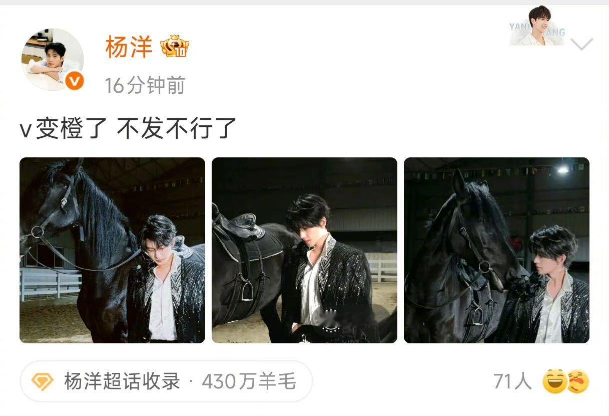 杨洋为了升金V发博 原来这是第三次掉v啦,确实掉v丢面,自拍什么时候能再见,今天