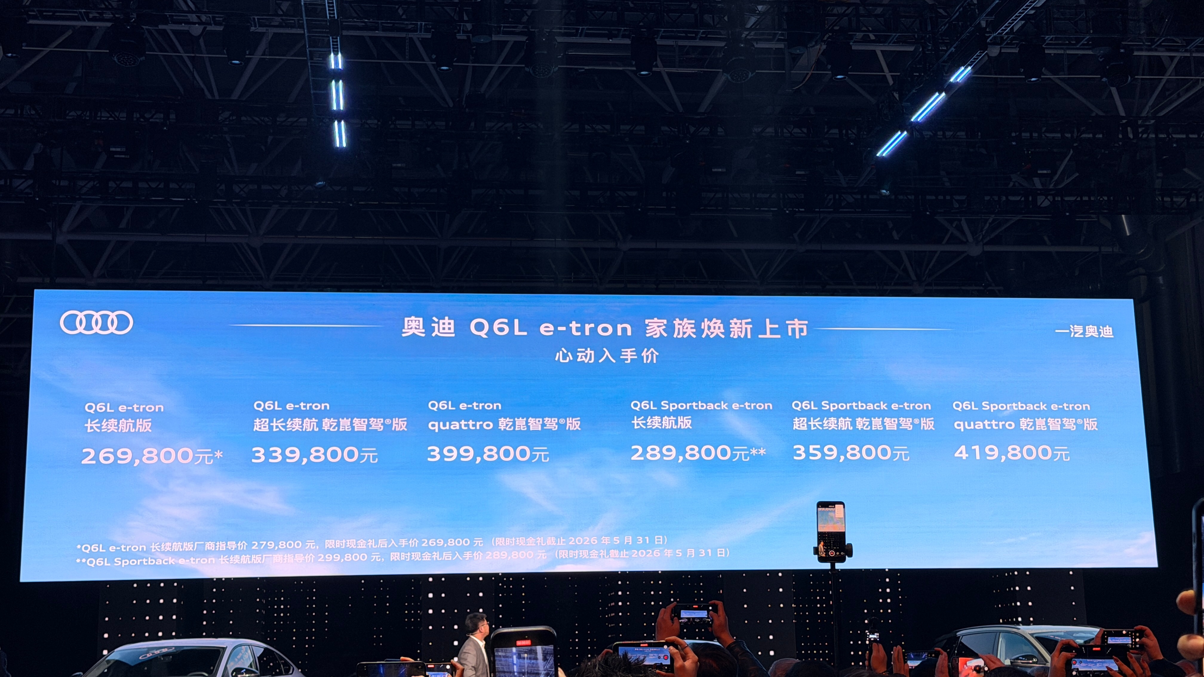 奥迪 A6L e-tron价格来啦!长续航版 —— 309,800元超长续航版