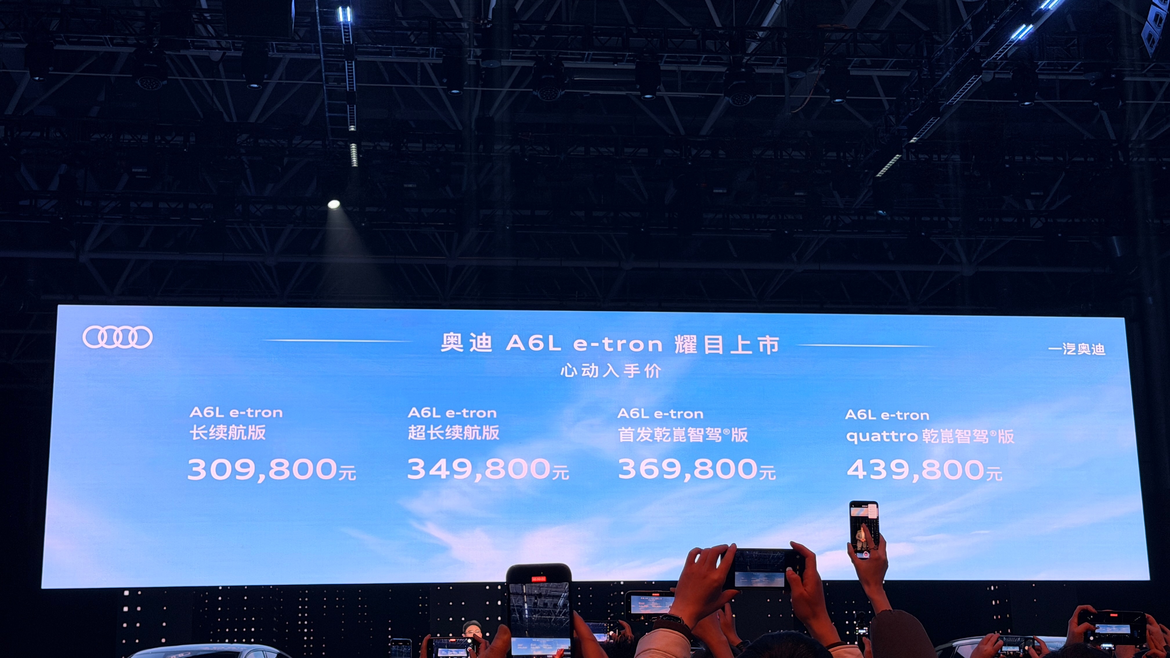 奥迪 A6L e-tron价格来啦!长续航版 —— 309,800元超长续航版 —— 349,800元首发乾崑智驾版 —— 369,800元quattro乾崑智驾版 —— 439,800元