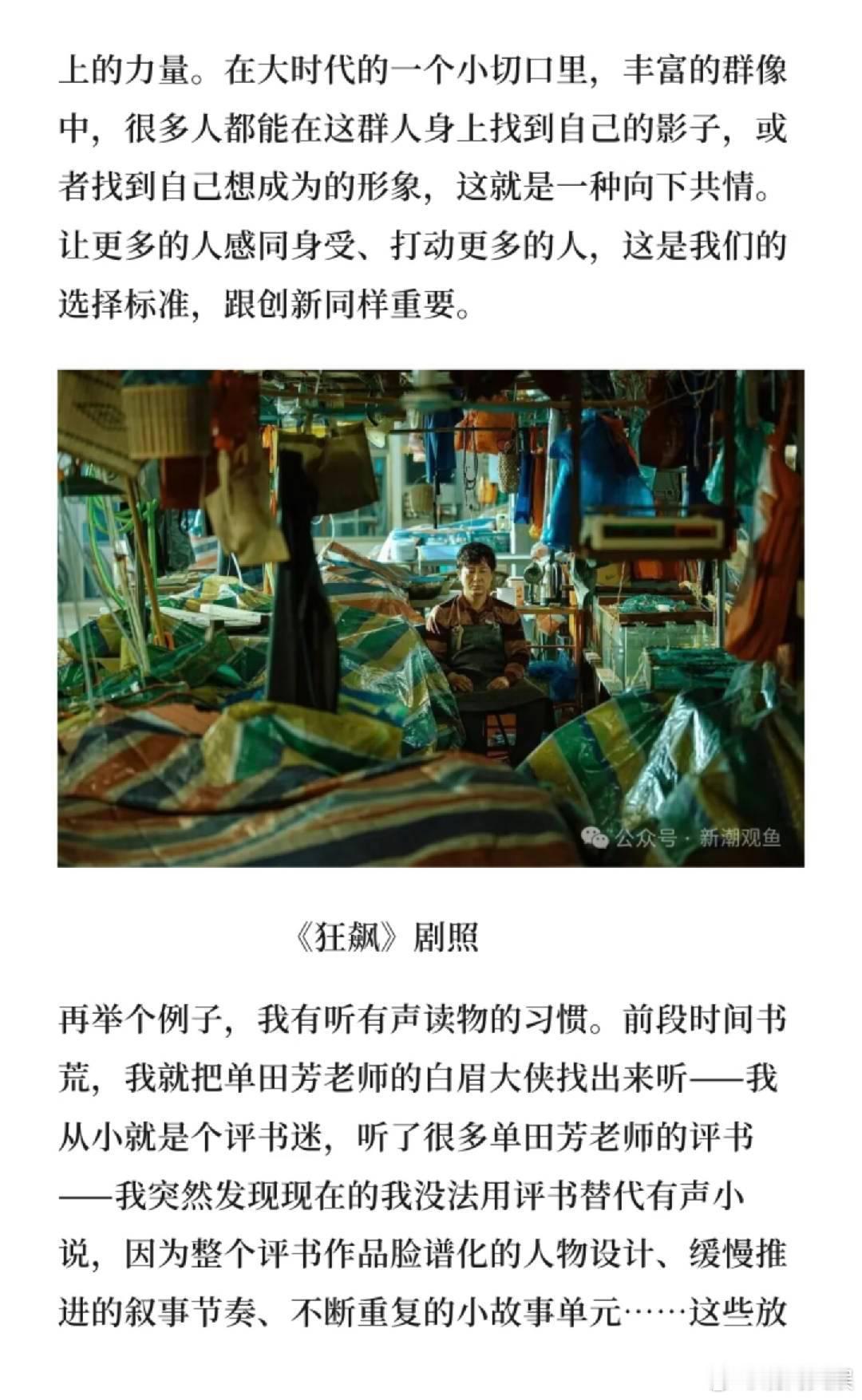 比如《狂飙》,它的成功最大的价值不仅仅是讲了一个什么样离奇刺激的故事,而更是让大家看到了小人物身上的力量。在大时代的一个小切口里,丰富的群像中,很多人都能在这群人身上找到自己的影子,或者找到自己想成为的形象,这就是一种向下共情。让更多的人感同身受、打动更多的人,这是我们的选择标准,跟创新同样重要。”