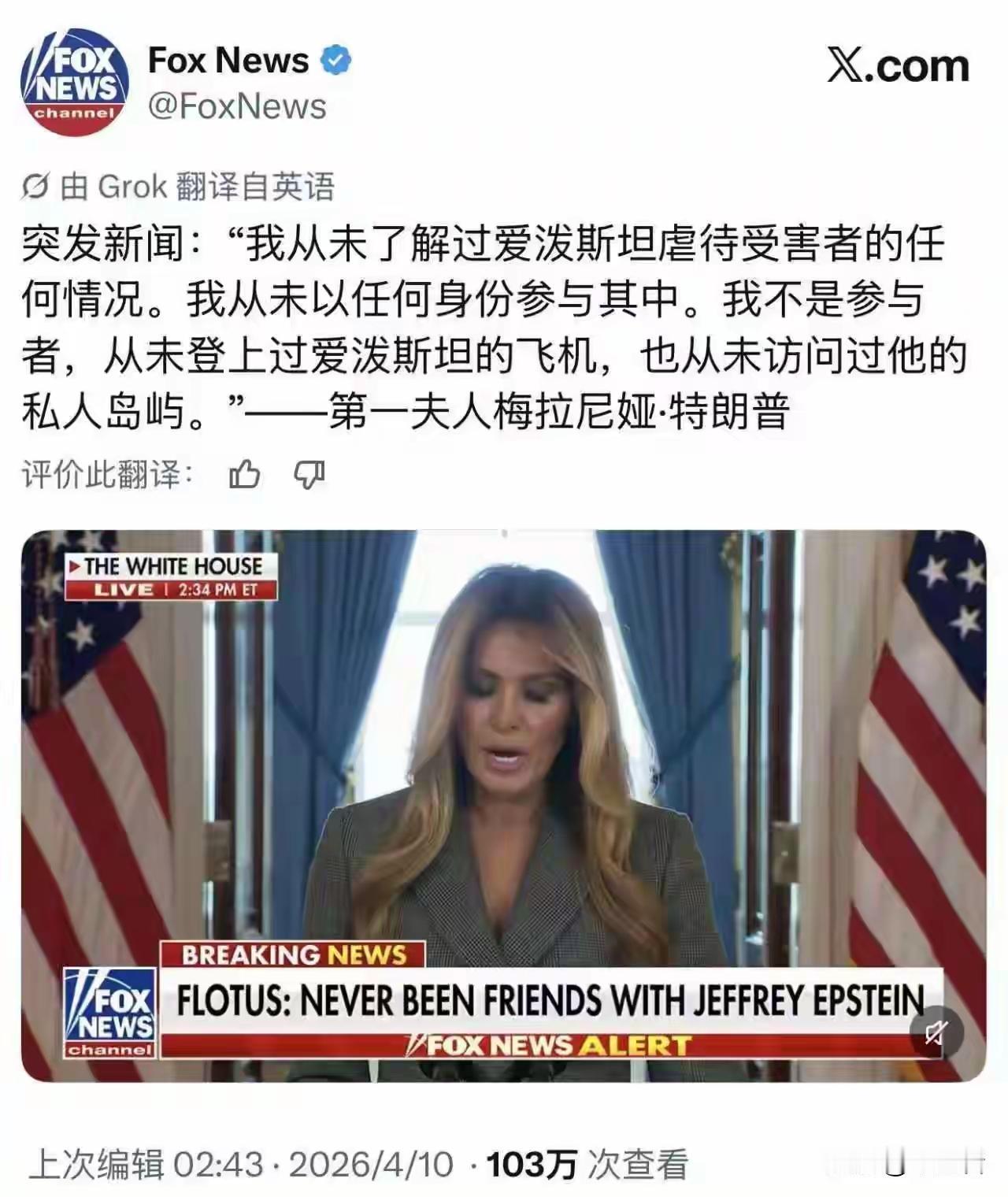 反正爱泼斯坦已经去世了,梅拉尼亚怎么说都行。