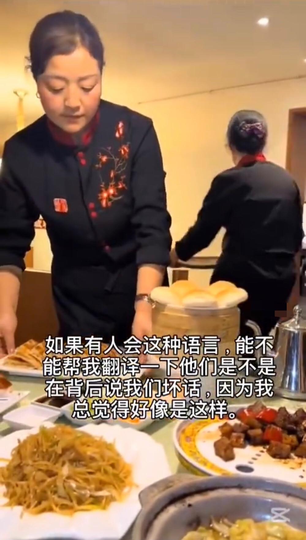 有一位德国女子来中国吃烤鸭,却指责给她上菜的服务员,看起来特别忙,而且表情很不爽,对她们很生气,她甚至怀疑服务员在用中文说她们的坏话”。
