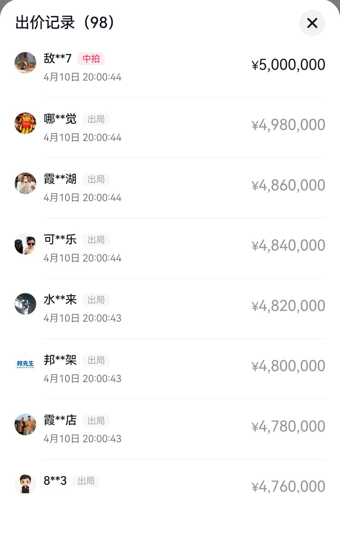 值得注意的是,在竞拍之前,有好几个热门的网红企业家都喊话要参与竞拍,可惜他们运气稍微差了一些,例如霞湖世家郭总、康巴赫周总,在竞买报价中名单中就看到了他们的账号。