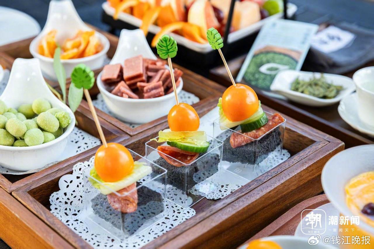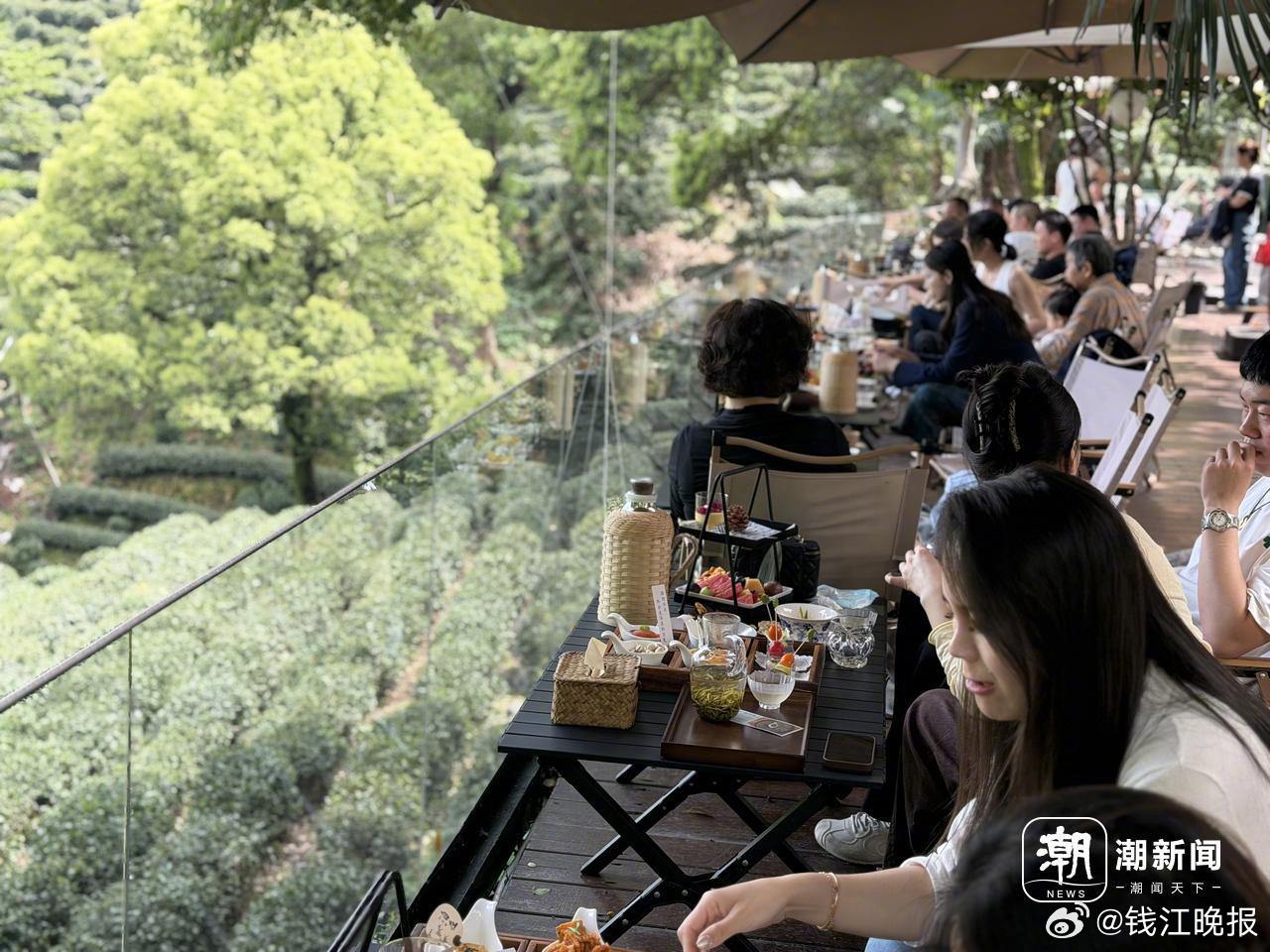 【#周杰伦打卡的杭州酒店被挤爆了#】4月6日,周杰伦结束杭州三场演唱会后,打卡“龙井茂居”酒店。社交媒体上,“冷萃龙井”“185级台阶上的春天”等话题持续升温。10日中午12点多,记者到达时一层平台区已经坐满了人。这里正是周杰伦携母亲、妻子昆凌当时用餐的地方,此刻座无虚席。几乎每一桌都整齐摆放着复刻版“周妈妈下午茶”:包含水果、零食、茶水等。