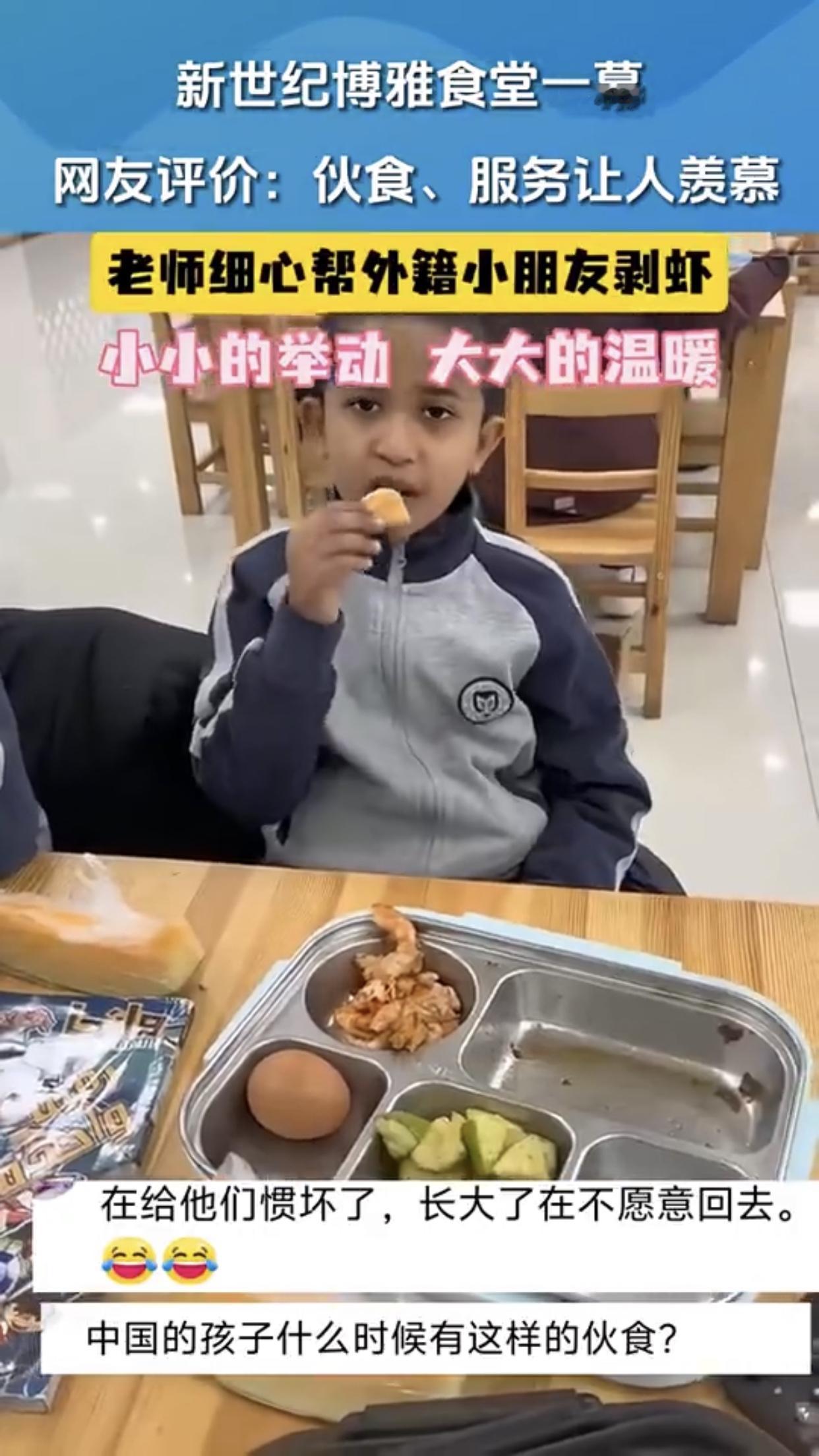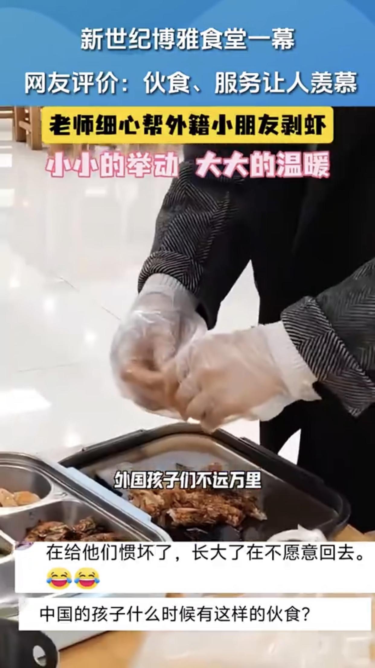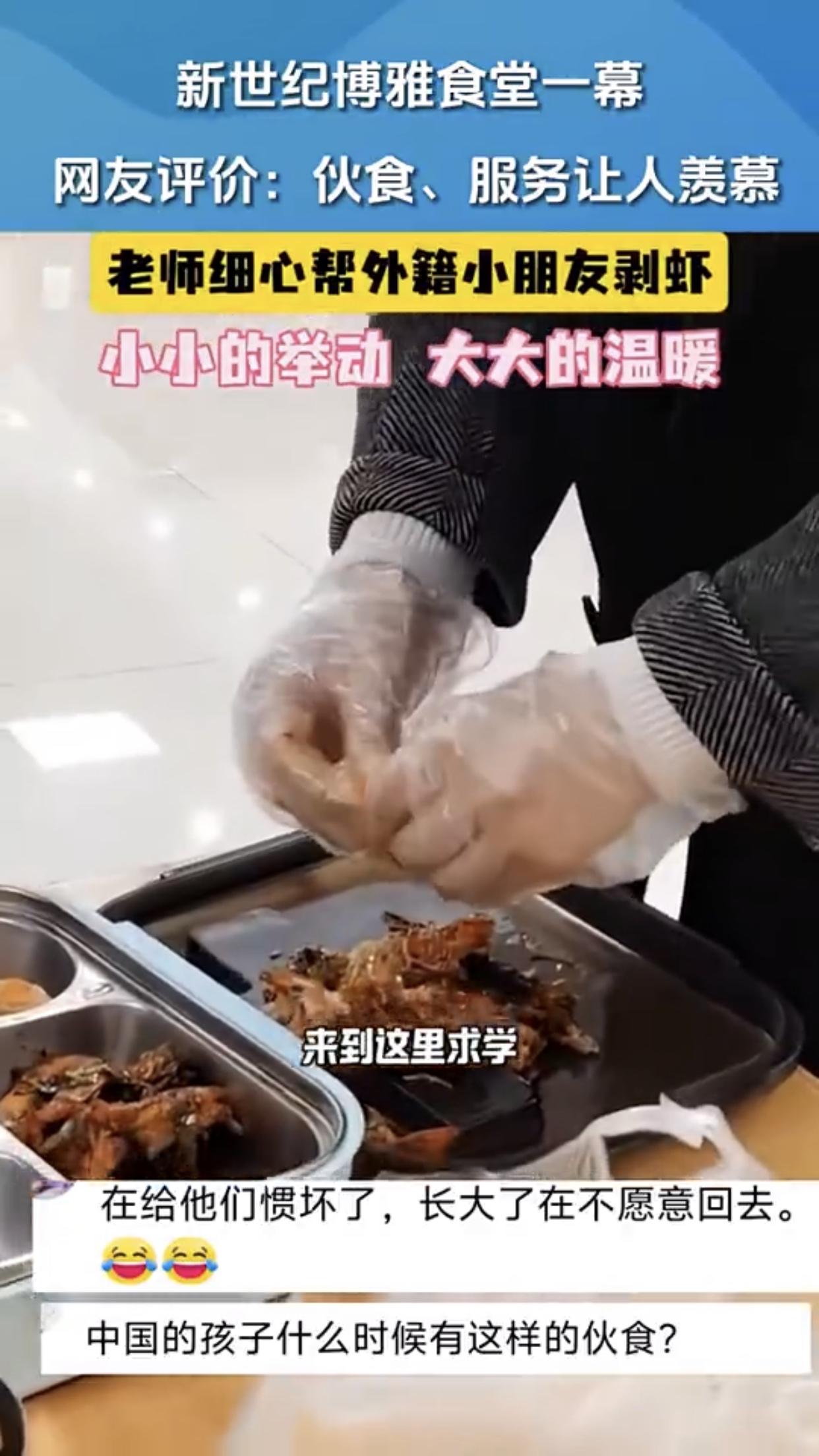 如果要剥虾,就应该给学校里全部的小朋友都剥,别整些有的没的,因为是外国学生所以要特殊待遇这种方式,搞得好像我们自己国内的学生低人一等似的,还把自己给整感动了!
